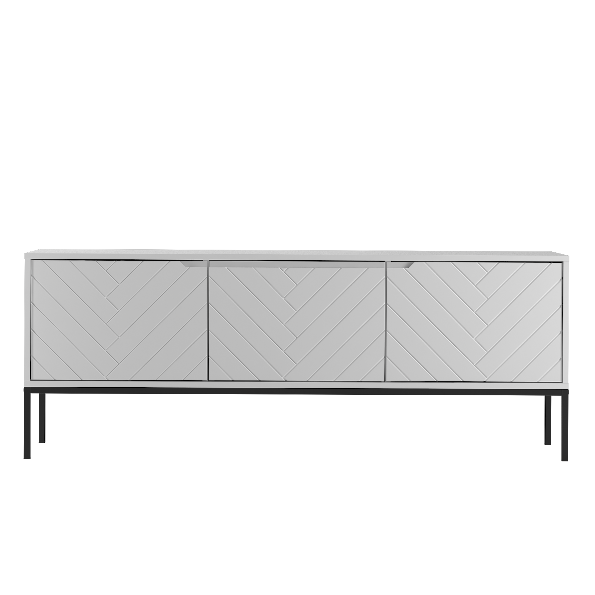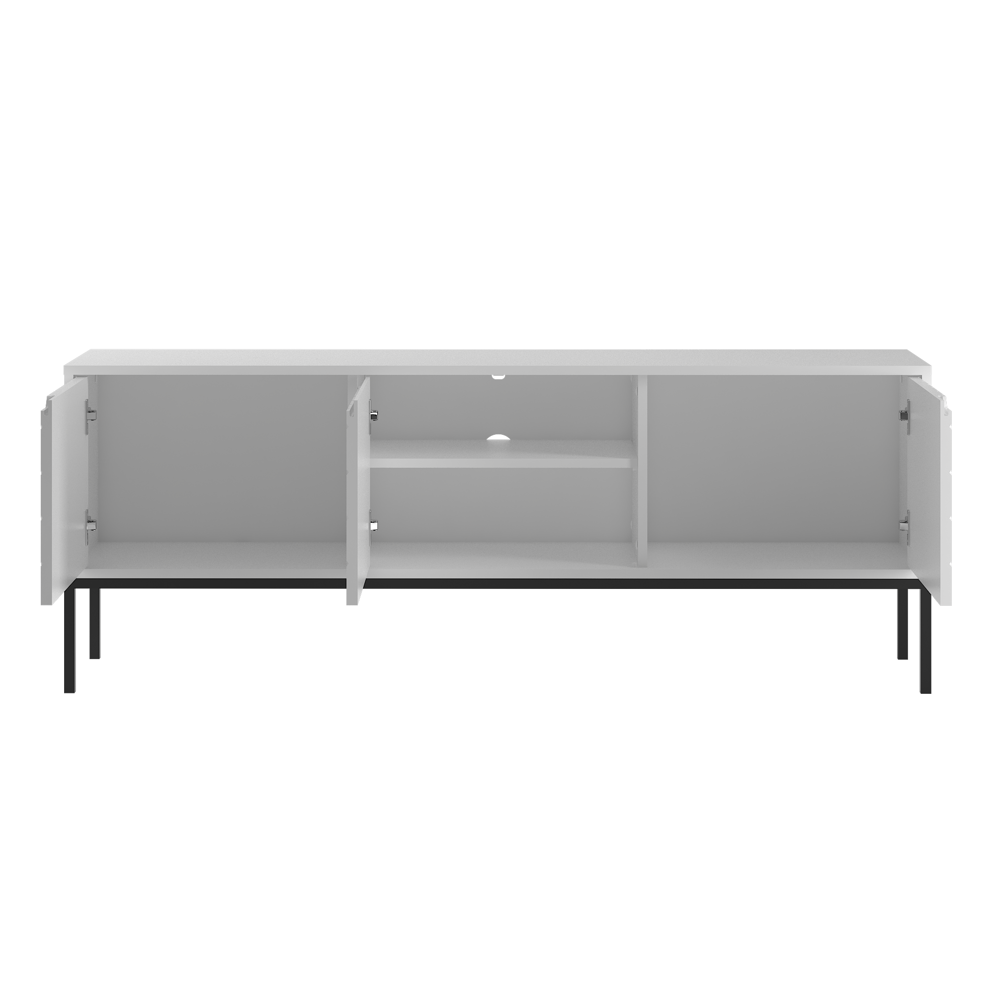 Komoda RTV ASPEN-01 to elegancja w białym macie na czarnym stelażu. Trzy drzwi z cichym domykiem gwarantują wygodę użytkowania. Wykonana z płyty MDF i laminowanej, łączy nowoczesność i funkcjonalność. Idealna do współczesnych wnętrz.