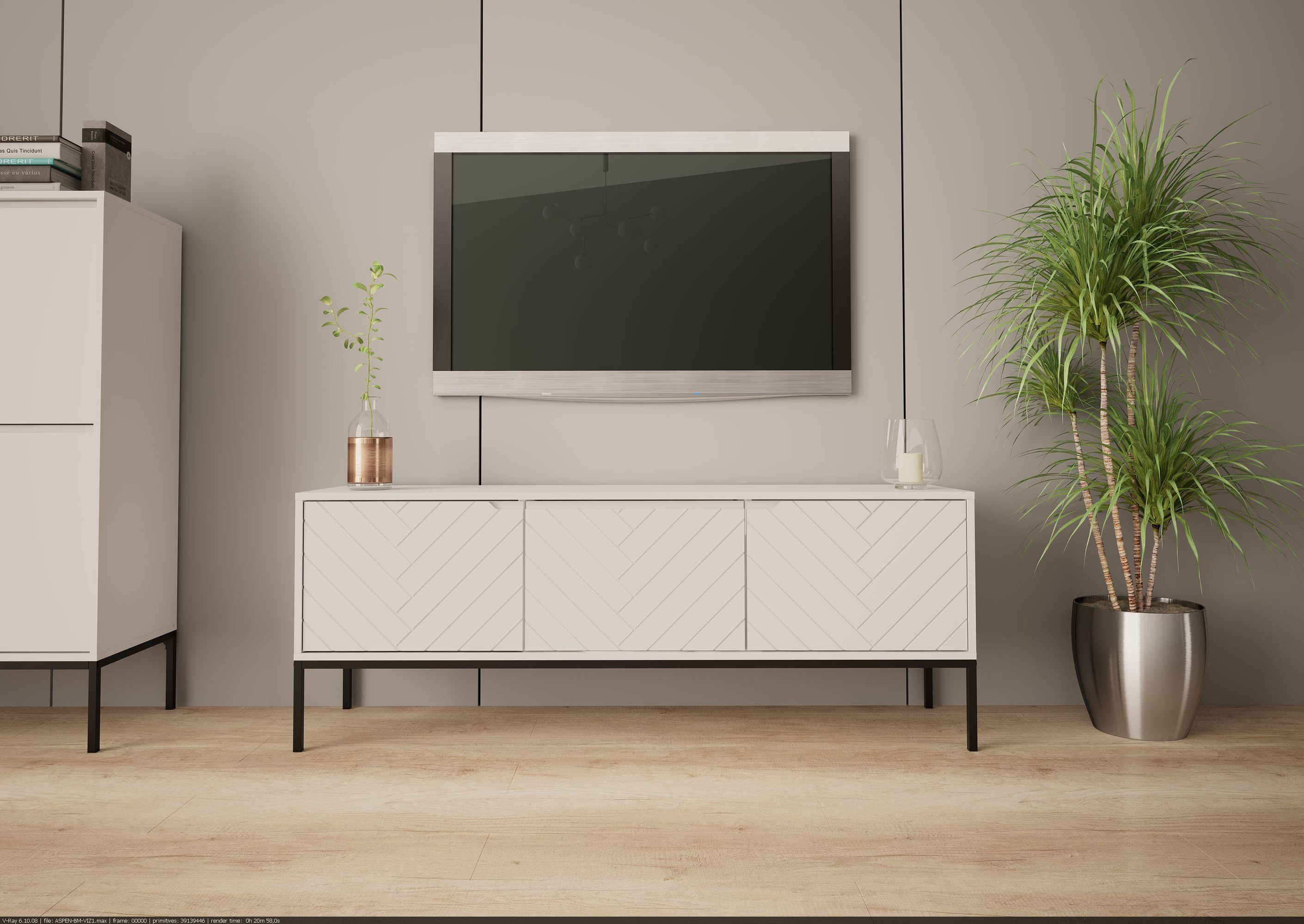 ASPEN-01 - Komoda RTV 3-drzwiowa Biały Mat Czarny Stelaż