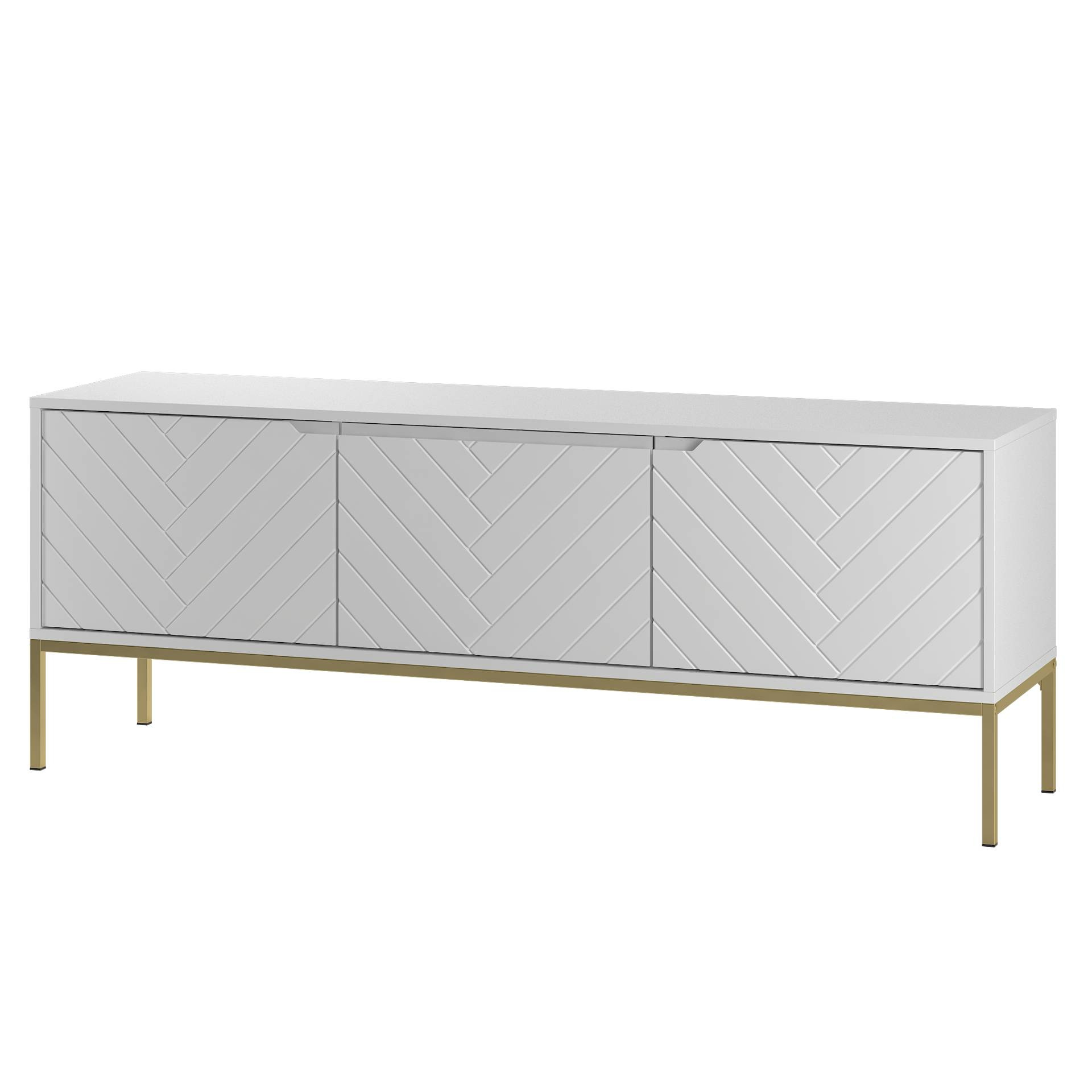 ASPEN-01 - Komoda RTV 3-drzwiowa Biały Mat Złoty Stelaż