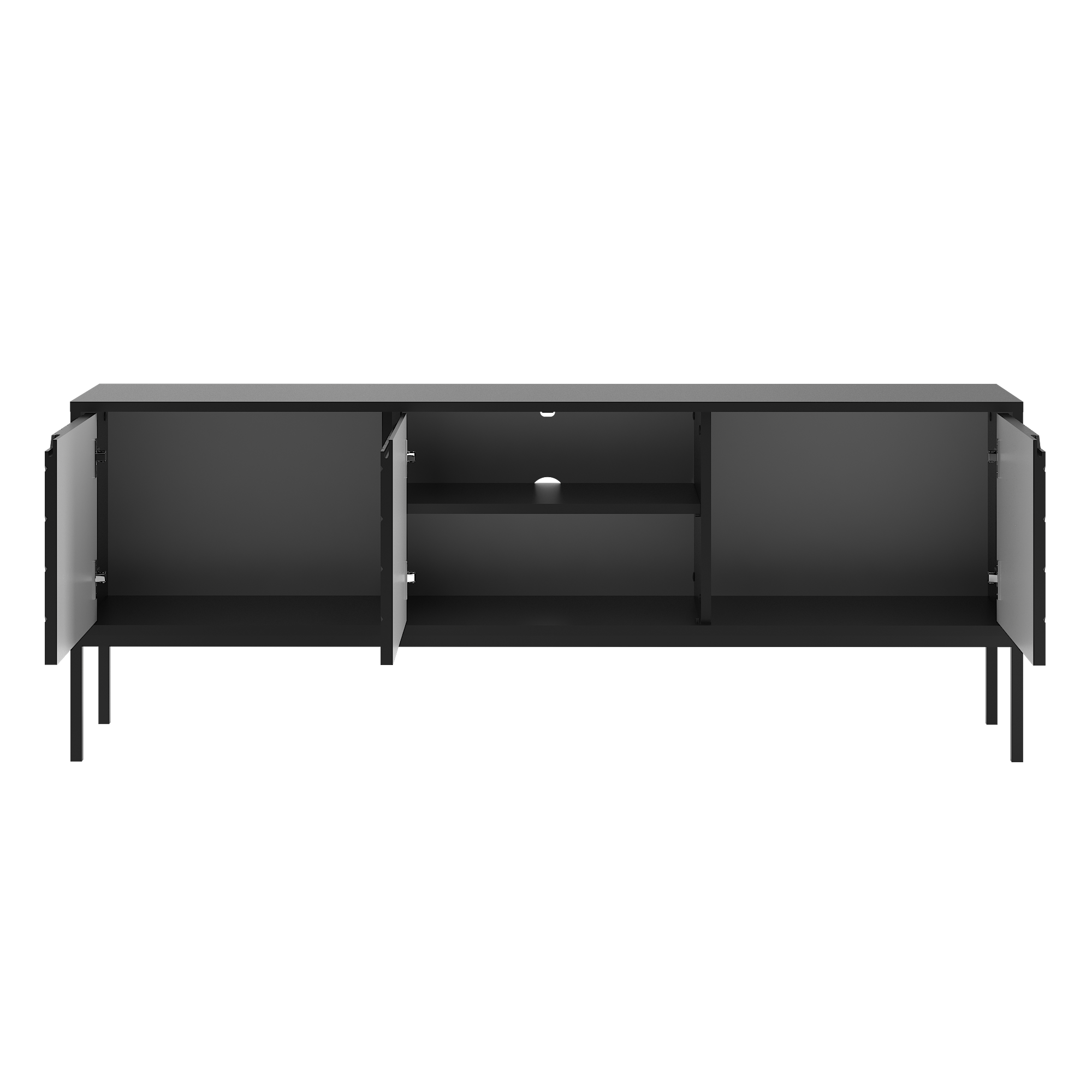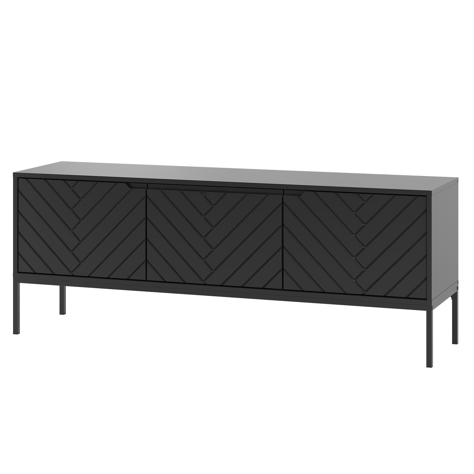ASPEN-01 - Komoda RTV 3-drzwiowa Czarny Mat Czarny Stelaż