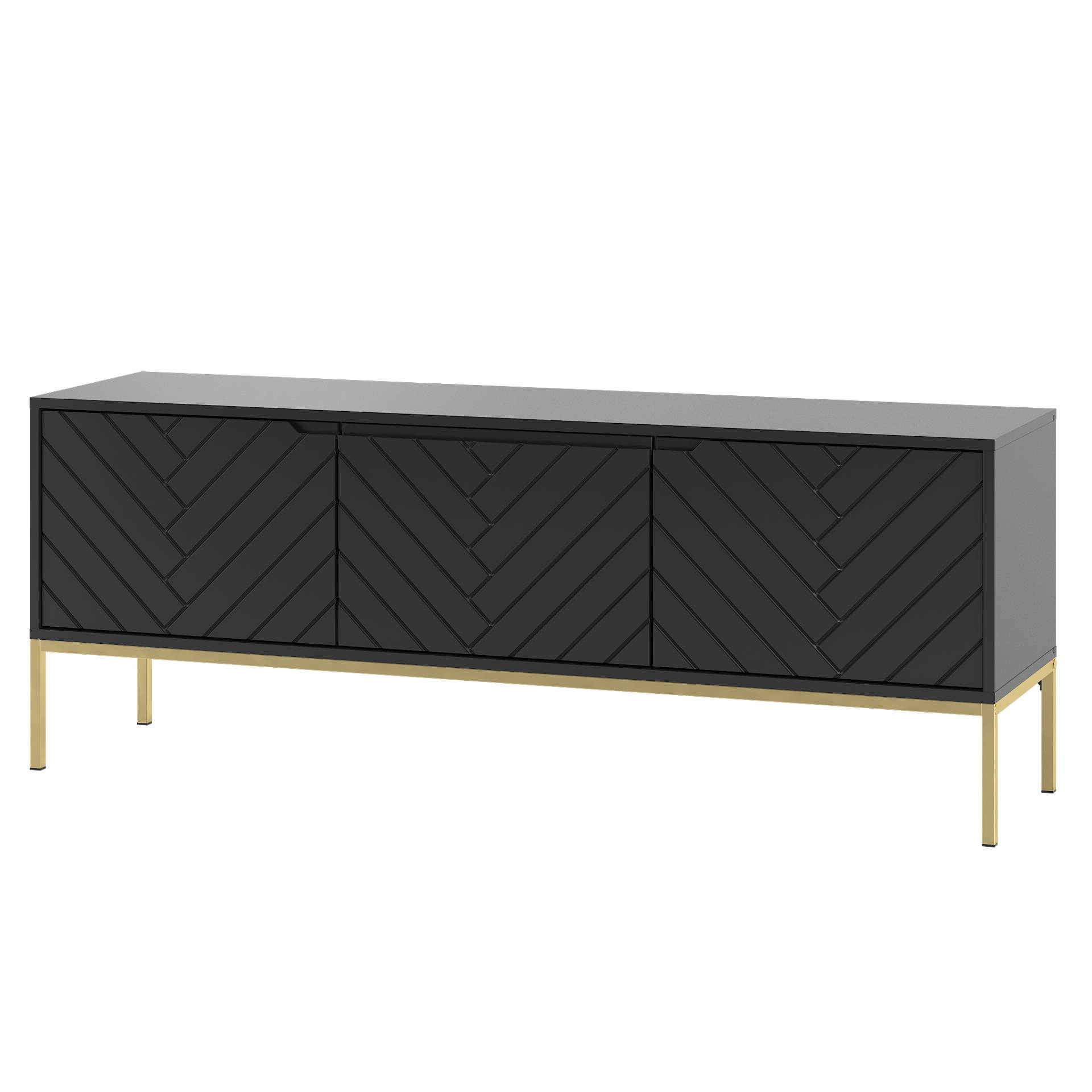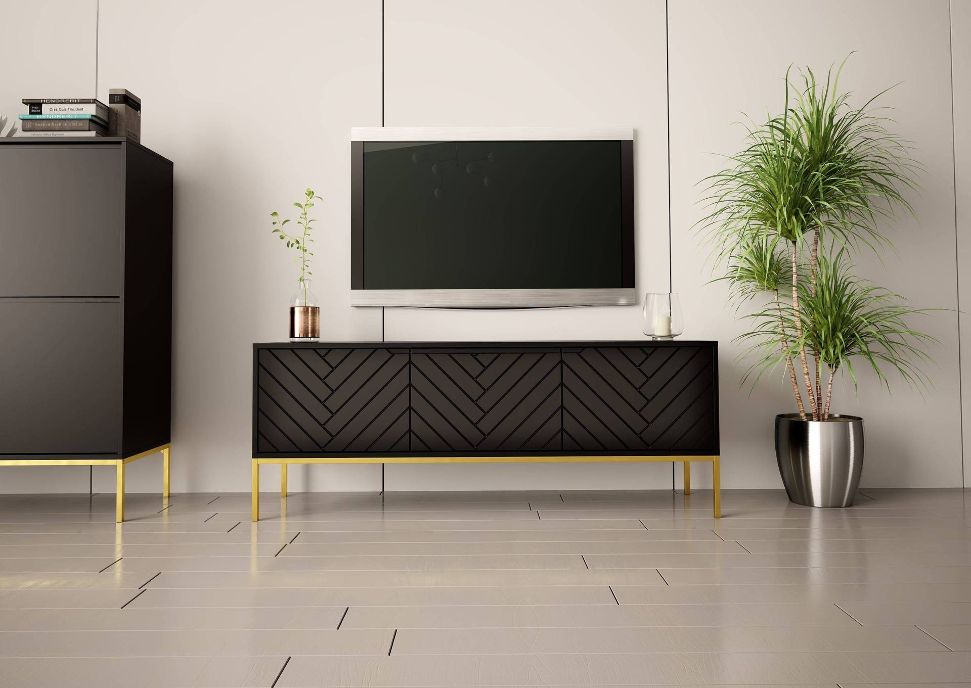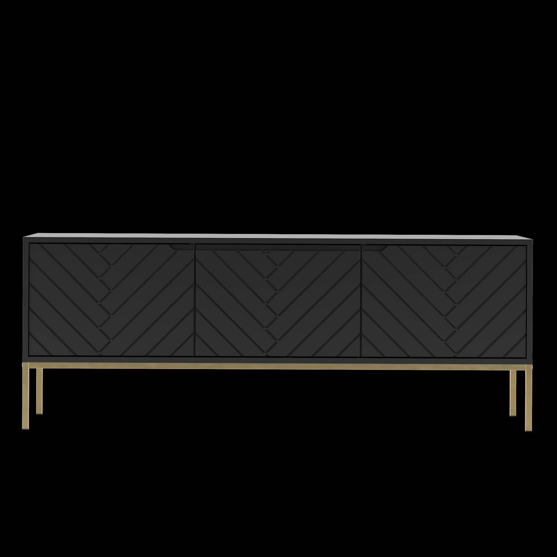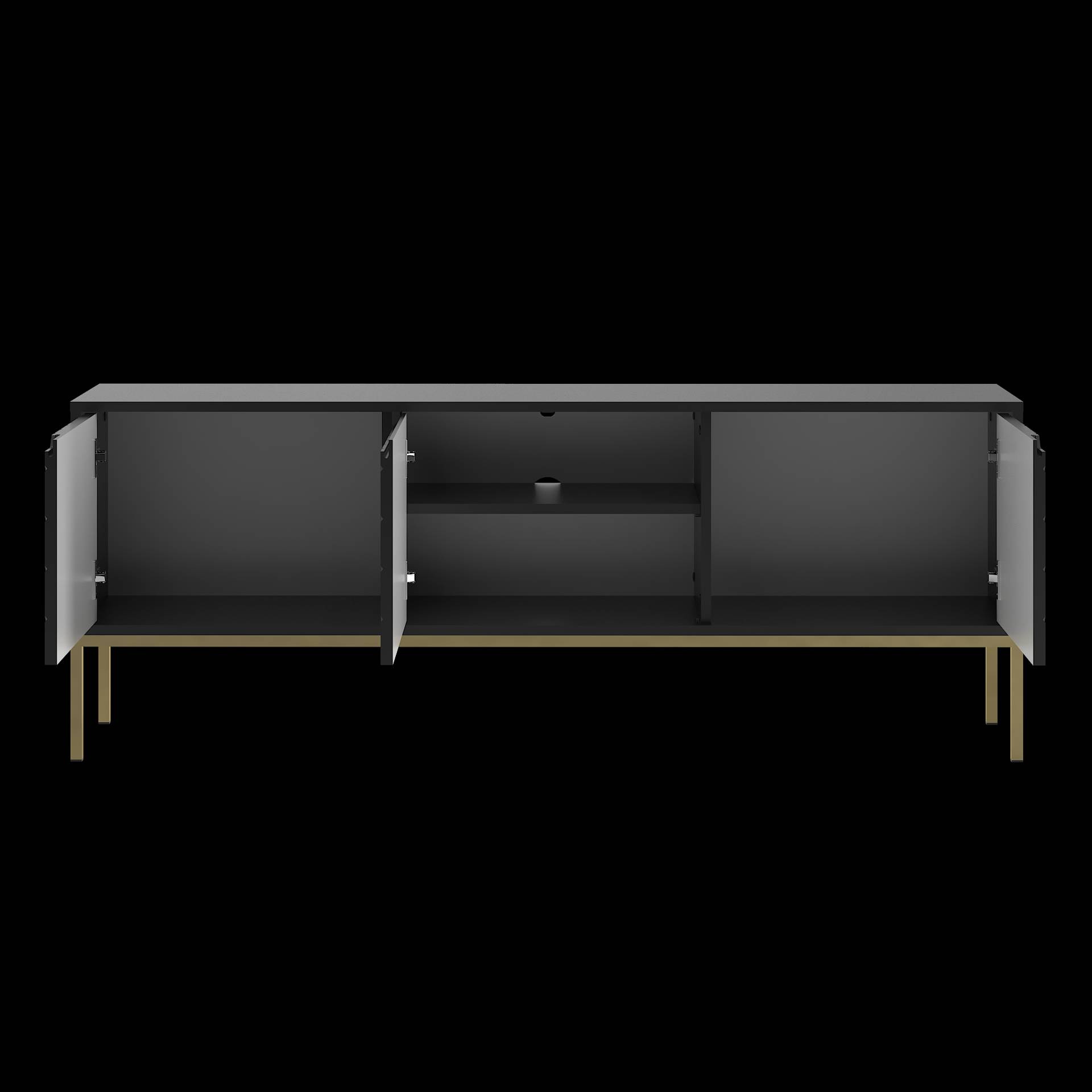 ASPEN-01 - Komoda RTV 3-drzwiowa Czarny Mat Złoty Stelaż