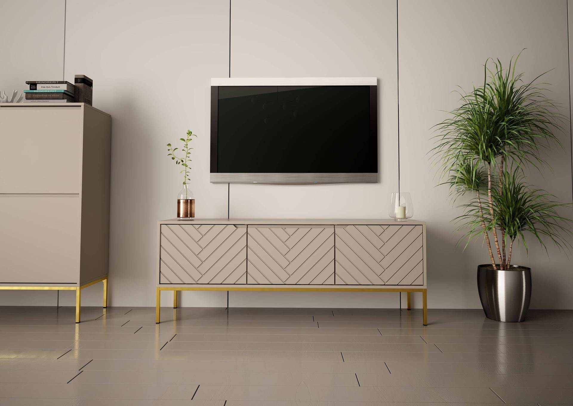 ASPEN-01 - Komoda RTV 3-drzwiowa Kaszmir Złoty Stelaż