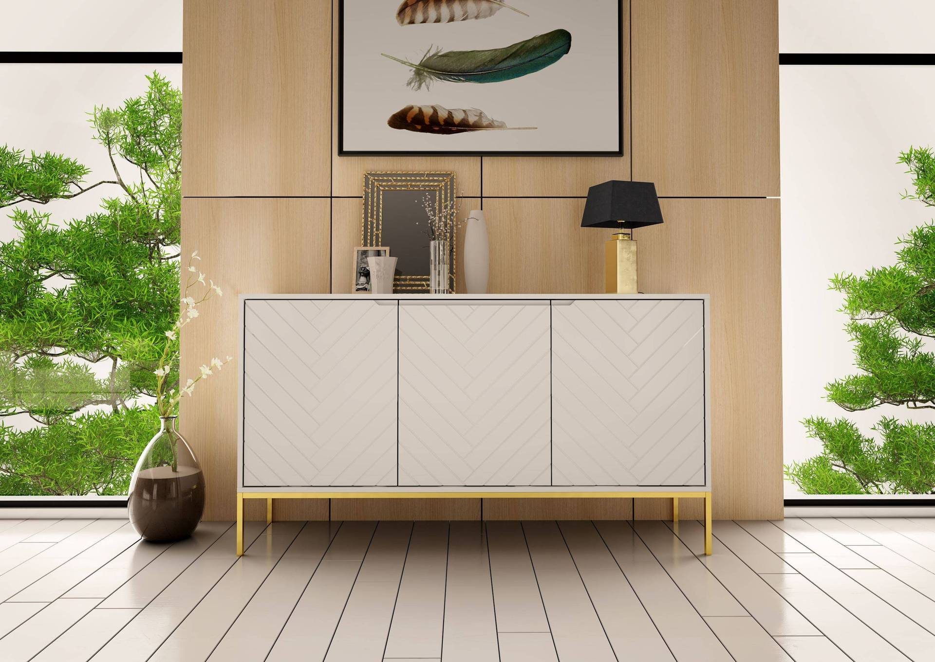 ASPEN-03 - Komoda 3-drzwiowa Biały Mat Złoty Stelaż