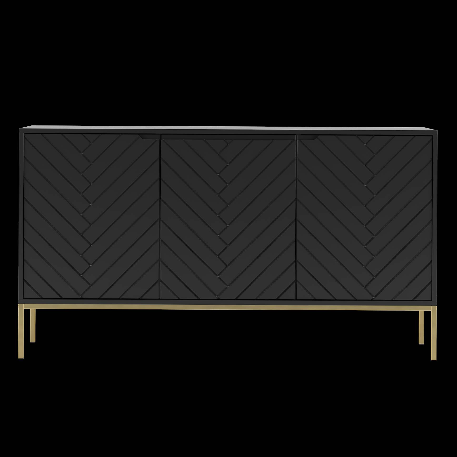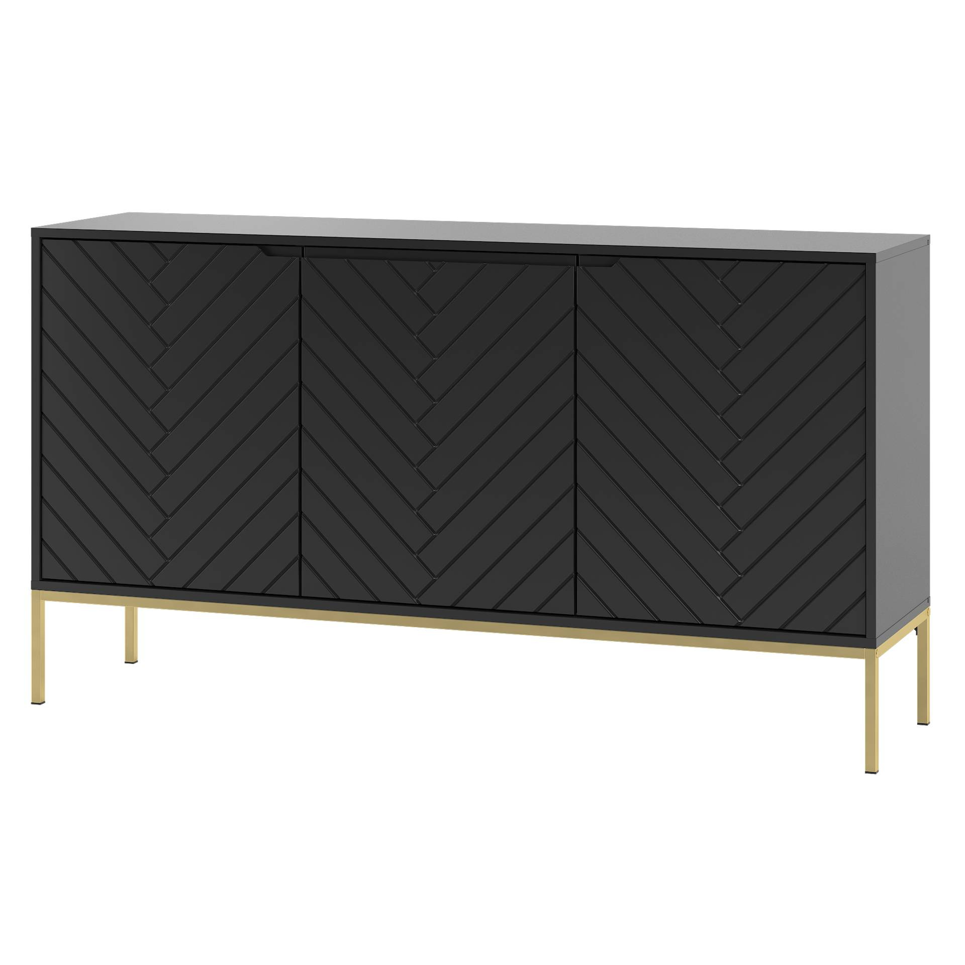 ASPEN-03 - Komoda 3-drzwiowa Czarny Mat Złoty Stelaż