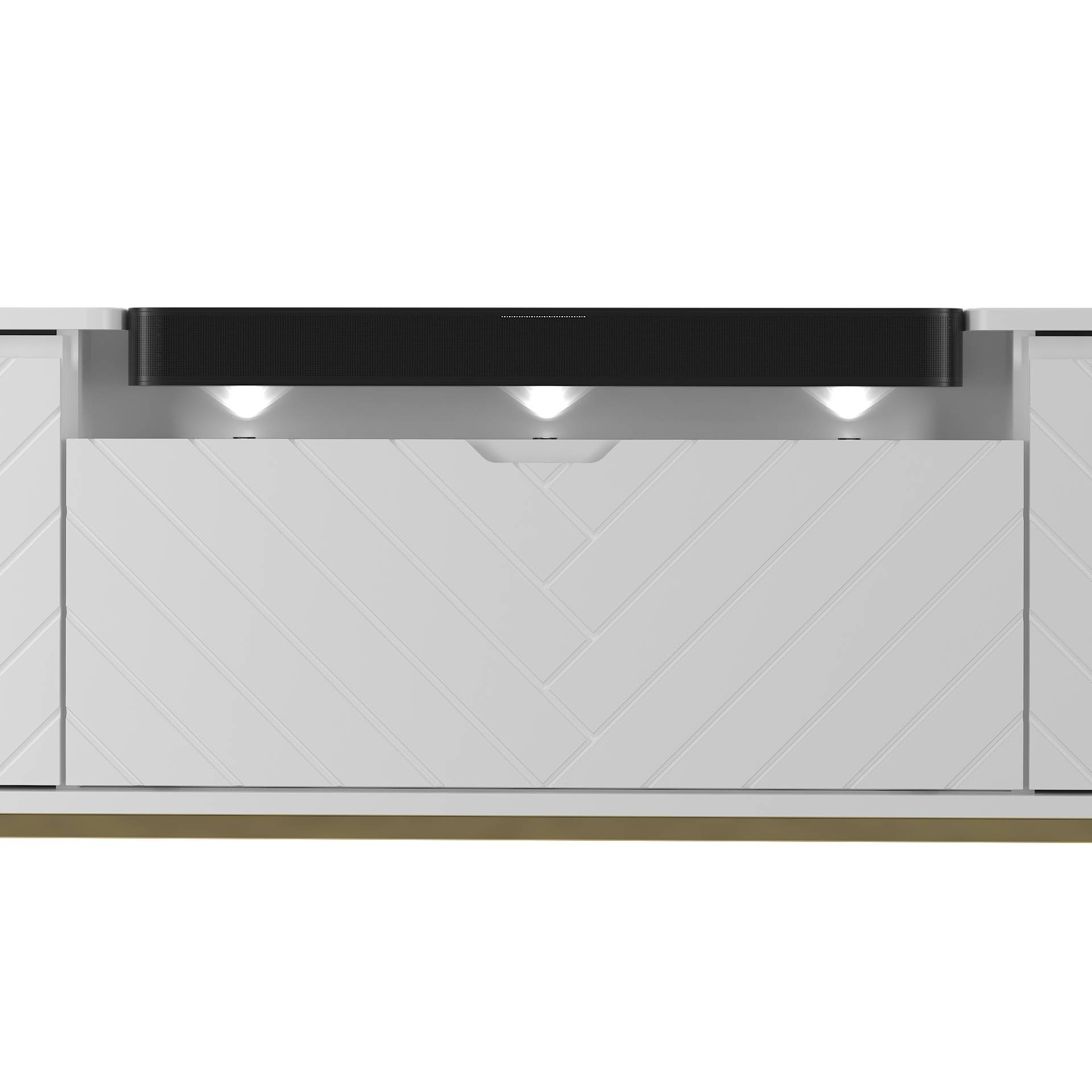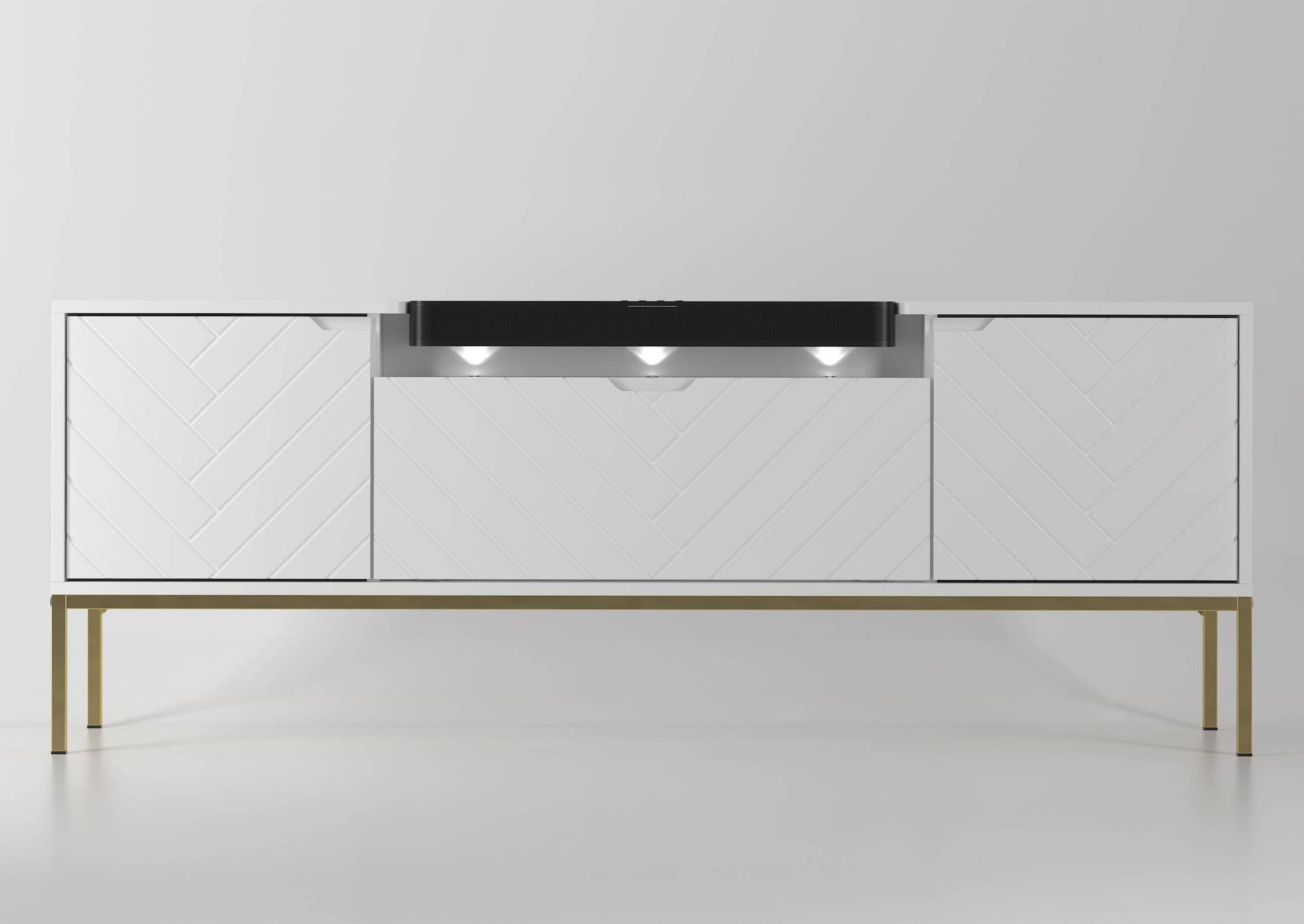 ASPEN-06 - Komoda RTV 3D z Soundbarem JBL i Oświetleniem LED Biały Mat Złoty Stelaż