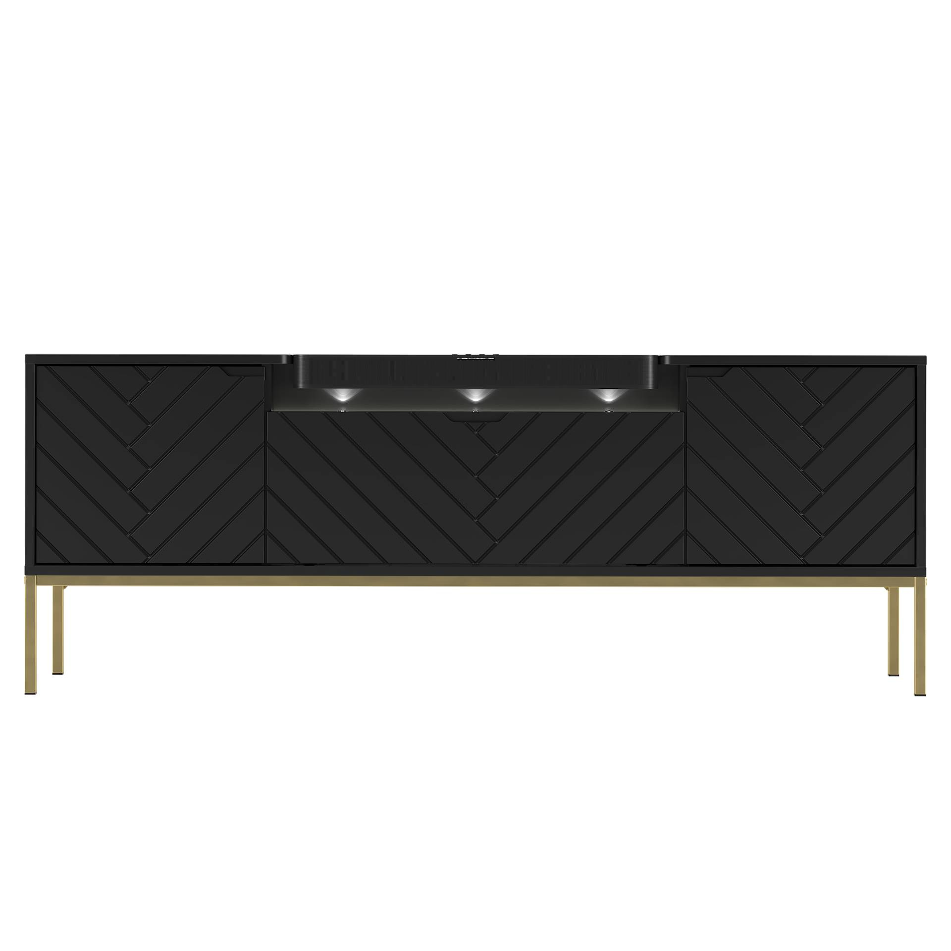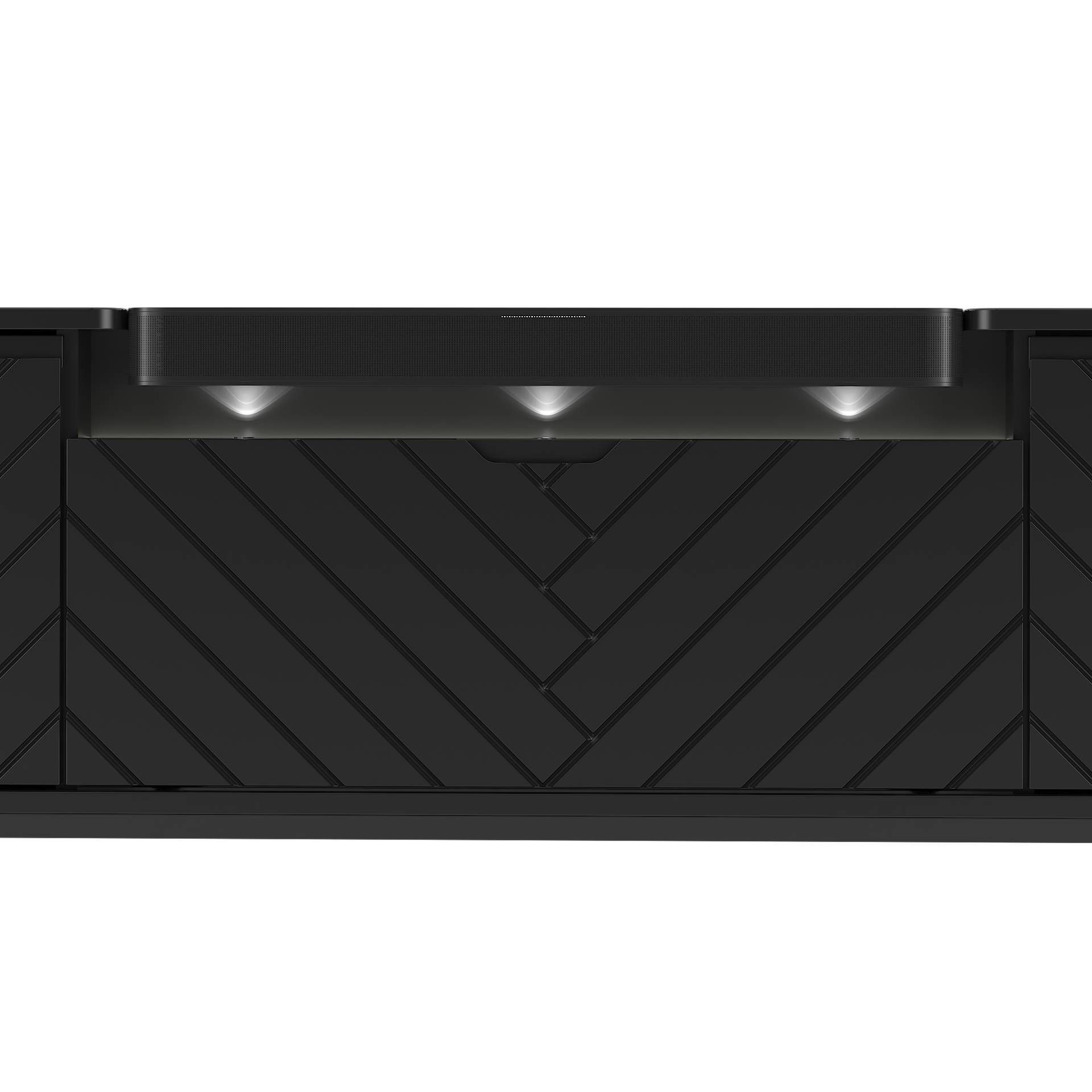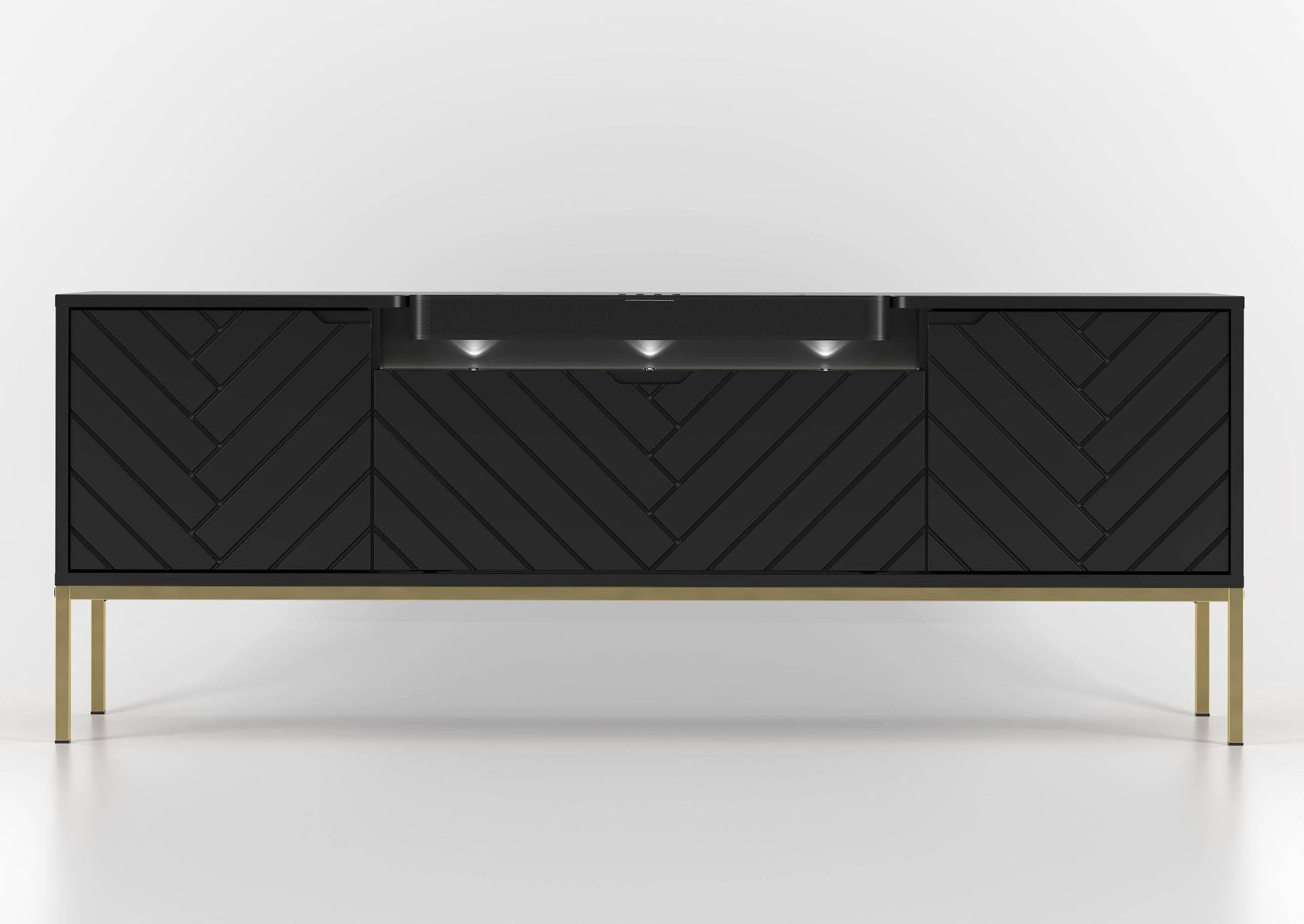 ASPEN-06 - Komoda RTV 3D z Soundbarem JBL i Oświetleniem LED Czarny Mat Złoty Stelaż