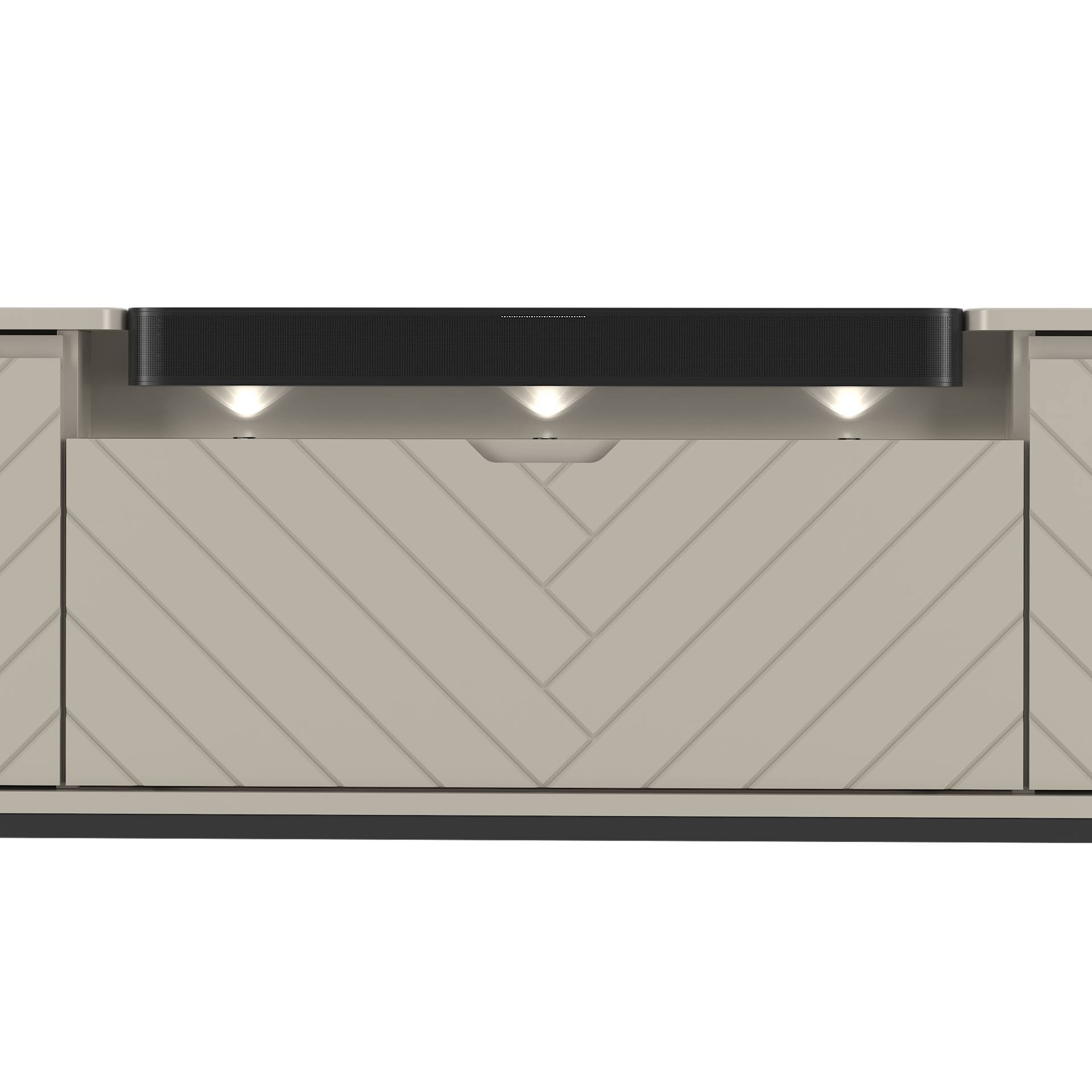 ASPEN-06 - Komoda RTV 3D z Soundbarem JBL i Oświetleniem LED Kaszmir Czarny Stelaż