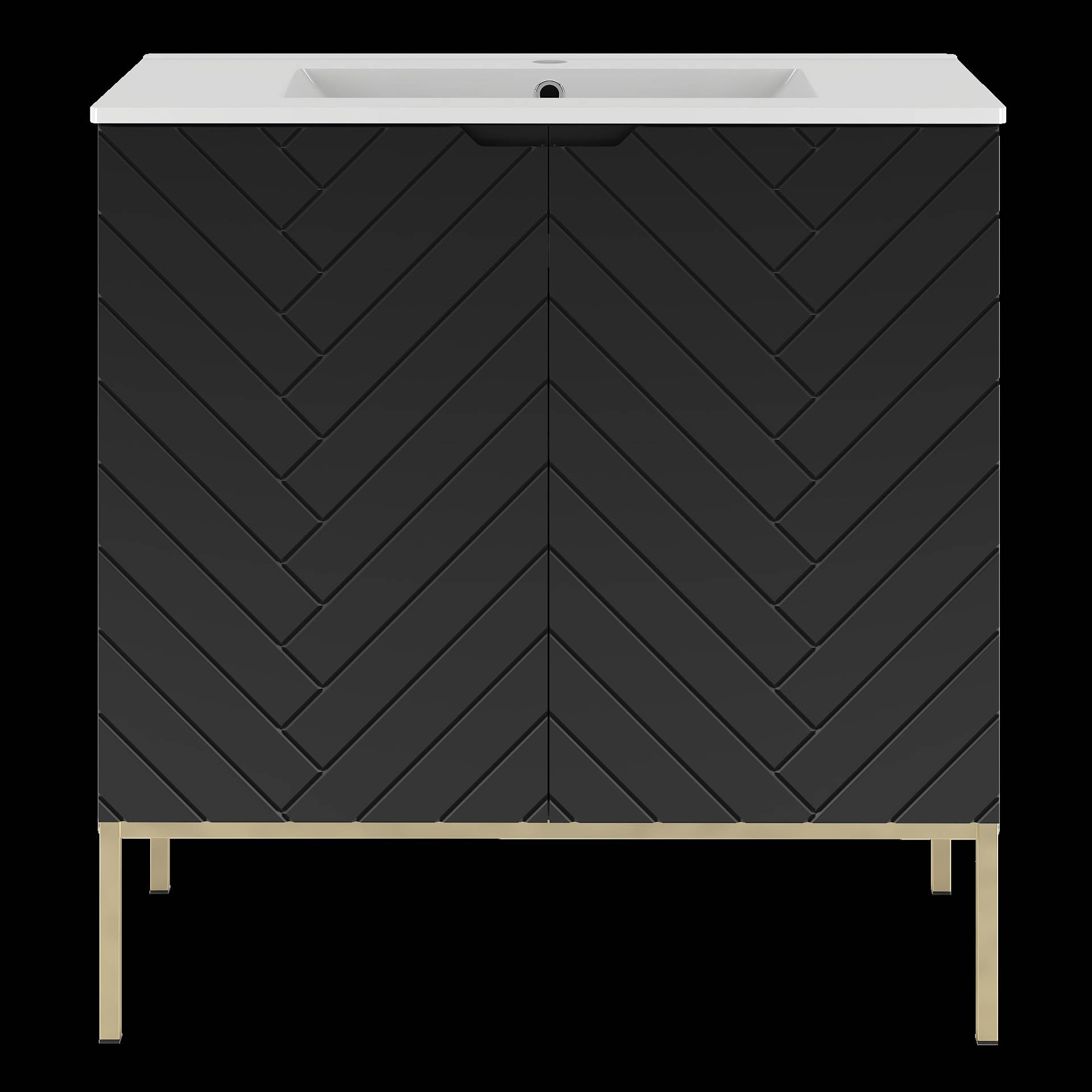 ASPEN-08 - Szafka z Umywalką 2D 80cm Czarny Mat Zestaw-3 Złoty Stelaż