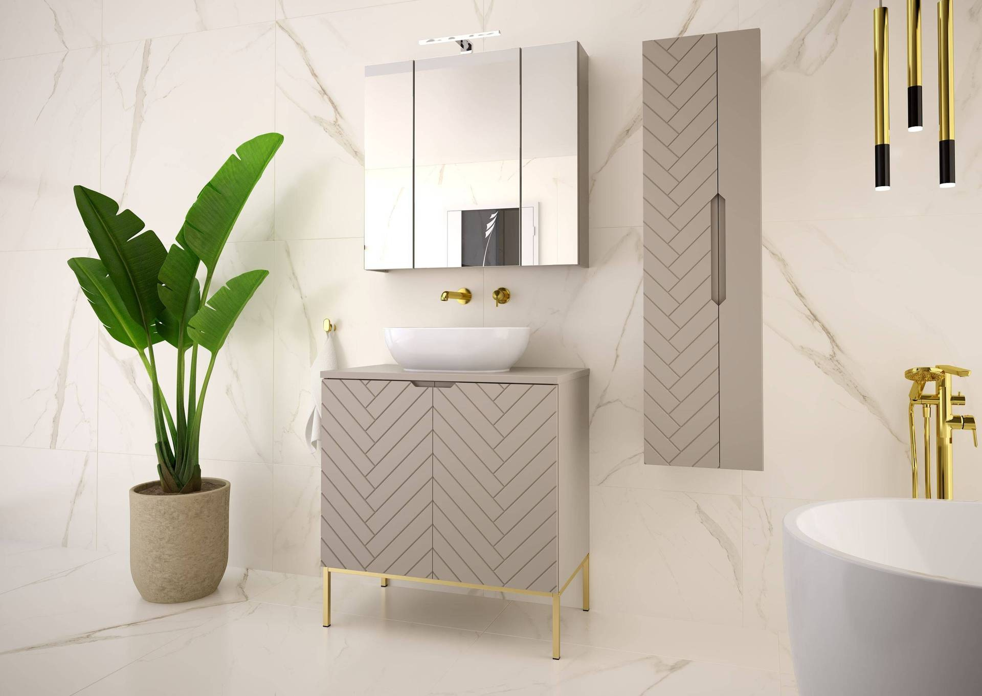 ASPEN-08 - Szafka z Umywalką i Blatem 2D 80cm Kaszmir Zestaw-2 Złoty Stelaż
