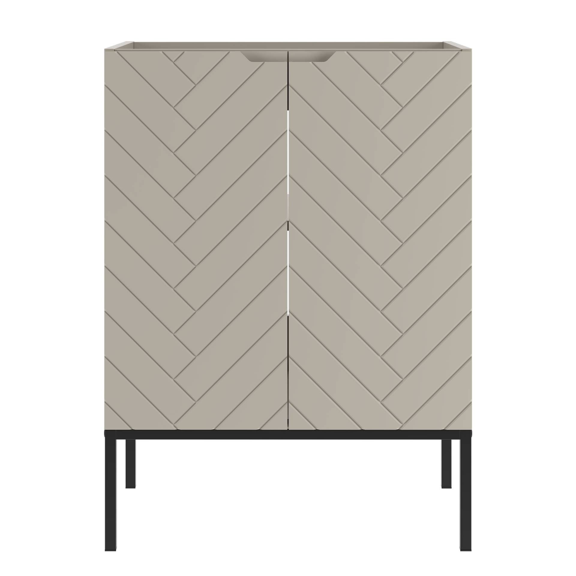 Stylowa szafka ASPEN-09 w kolorze kaszmir z eleganckim czarnym stelażem. Wykonana z trwałej płyty MDF i laminowanej, z puszkowymi zawiasami i cichym domykaniem. Idealna do nowoczesnej łazienki. Samodzielny montaż.