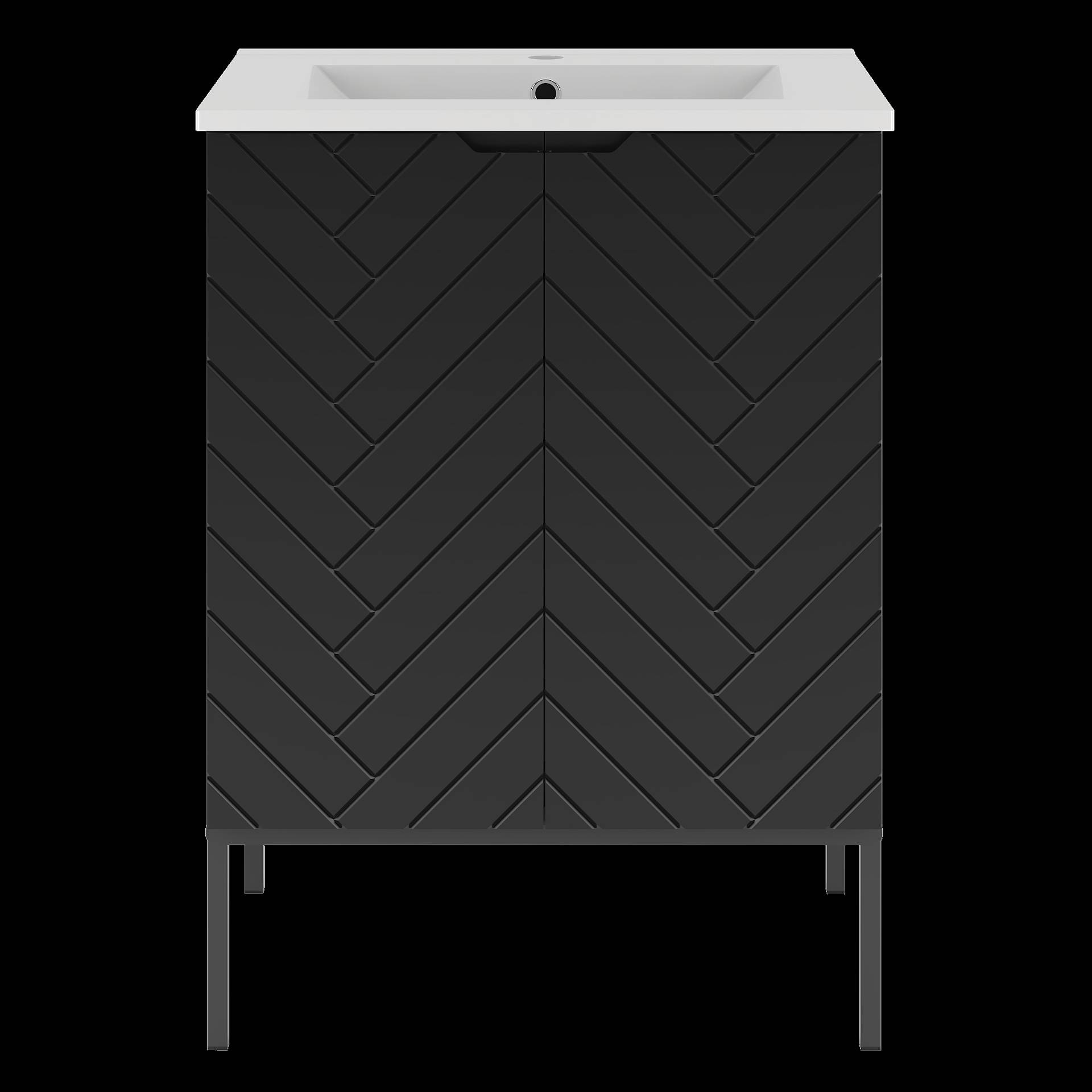 ASPEN-09 - Szafka z Umywalką 2D 60cm Czarny Mat Zestaw-3 Czarny Stelaż