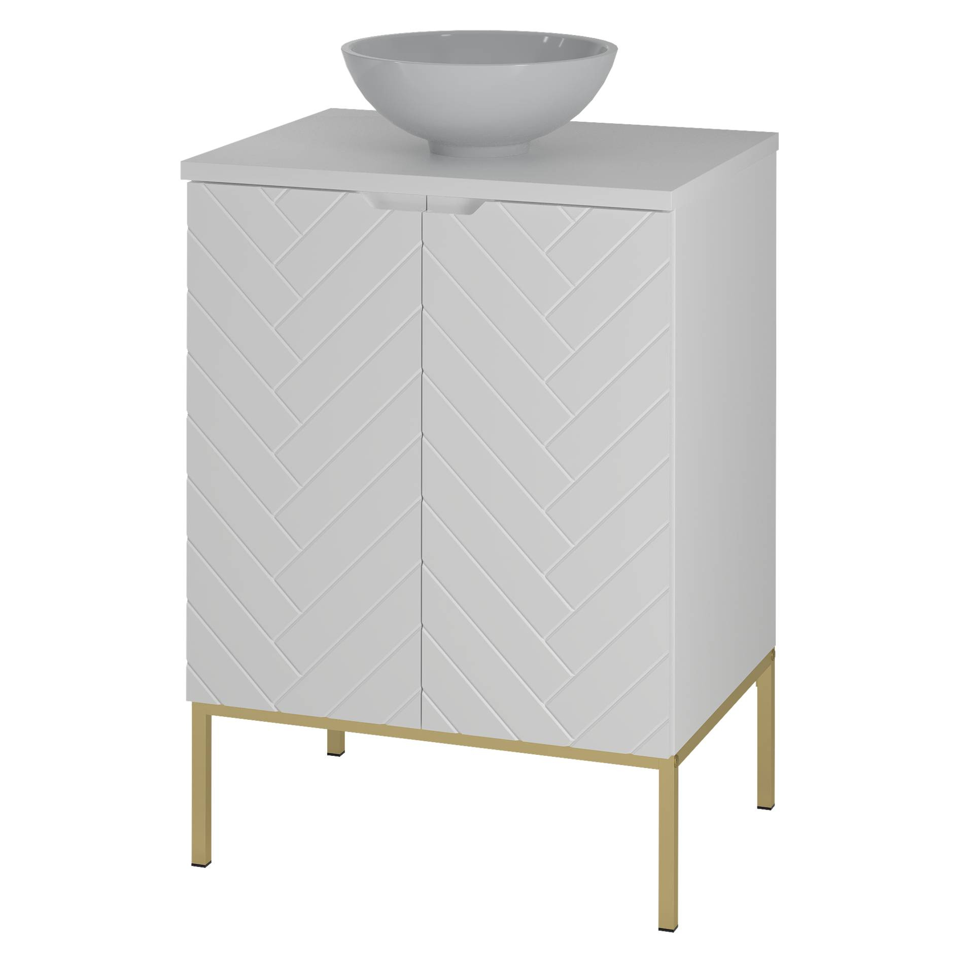 ASPEN-09 - Szafka z Umywalką i Blatem 2D 60cm Biały Mat Zestaw-2 Złoty Stelaż