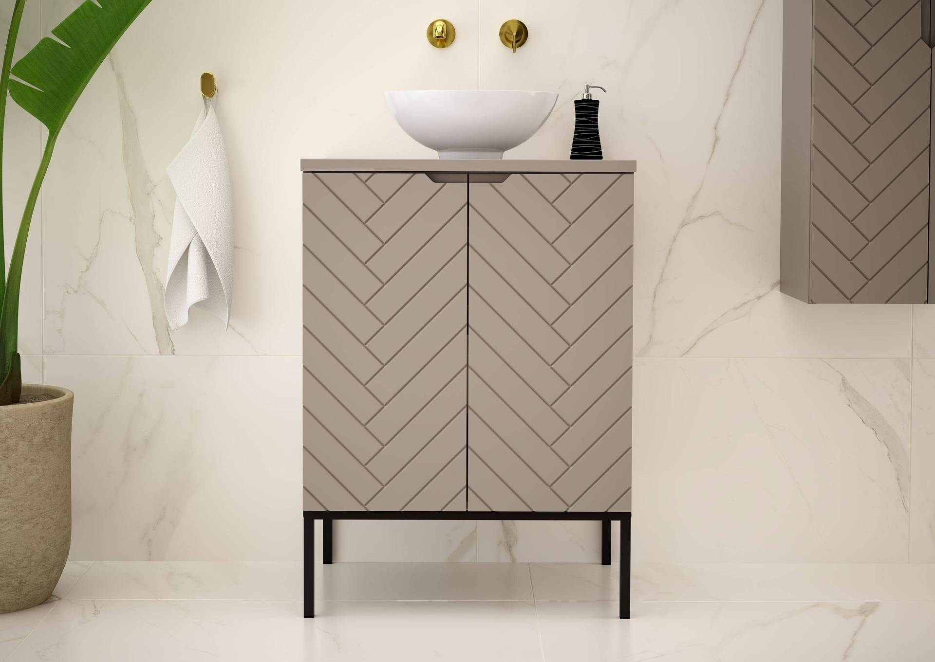 ASPEN-09 - Szafka z Umywalką i Blatem 2D 60cm Kaszmir Zestaw-2 Czarny Stelaż