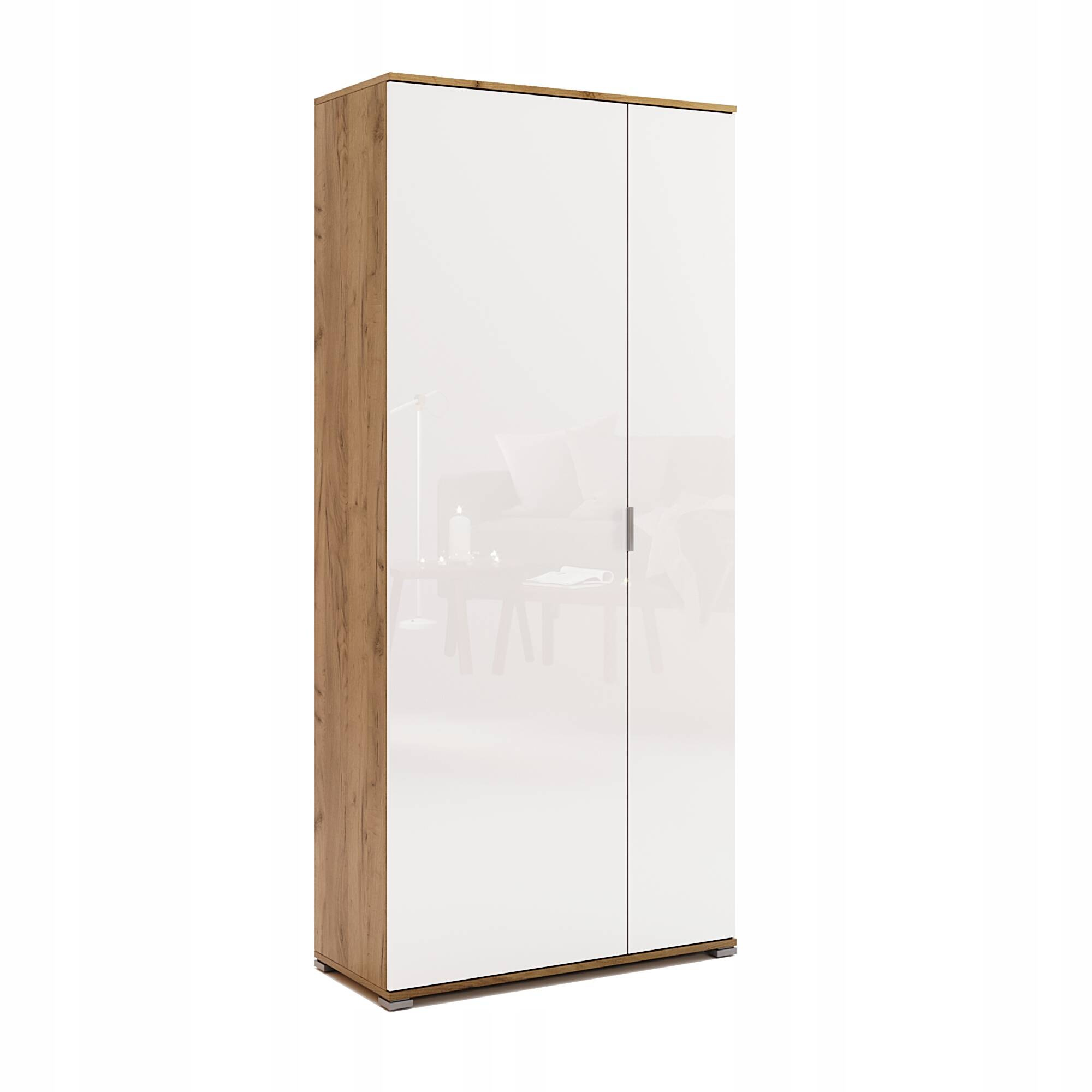 Szafa dwudrzwiowa Asti AS-122-WB zachwyca nowoczesnym designem w kolorze Dąb Craft i Biały Połysk. Wykonana z laminowanej płyty, oferuje matowe i błyszczące wykończenie. Praktyczne półki i wysuwany wieszak ułatwiają porządkowanie.