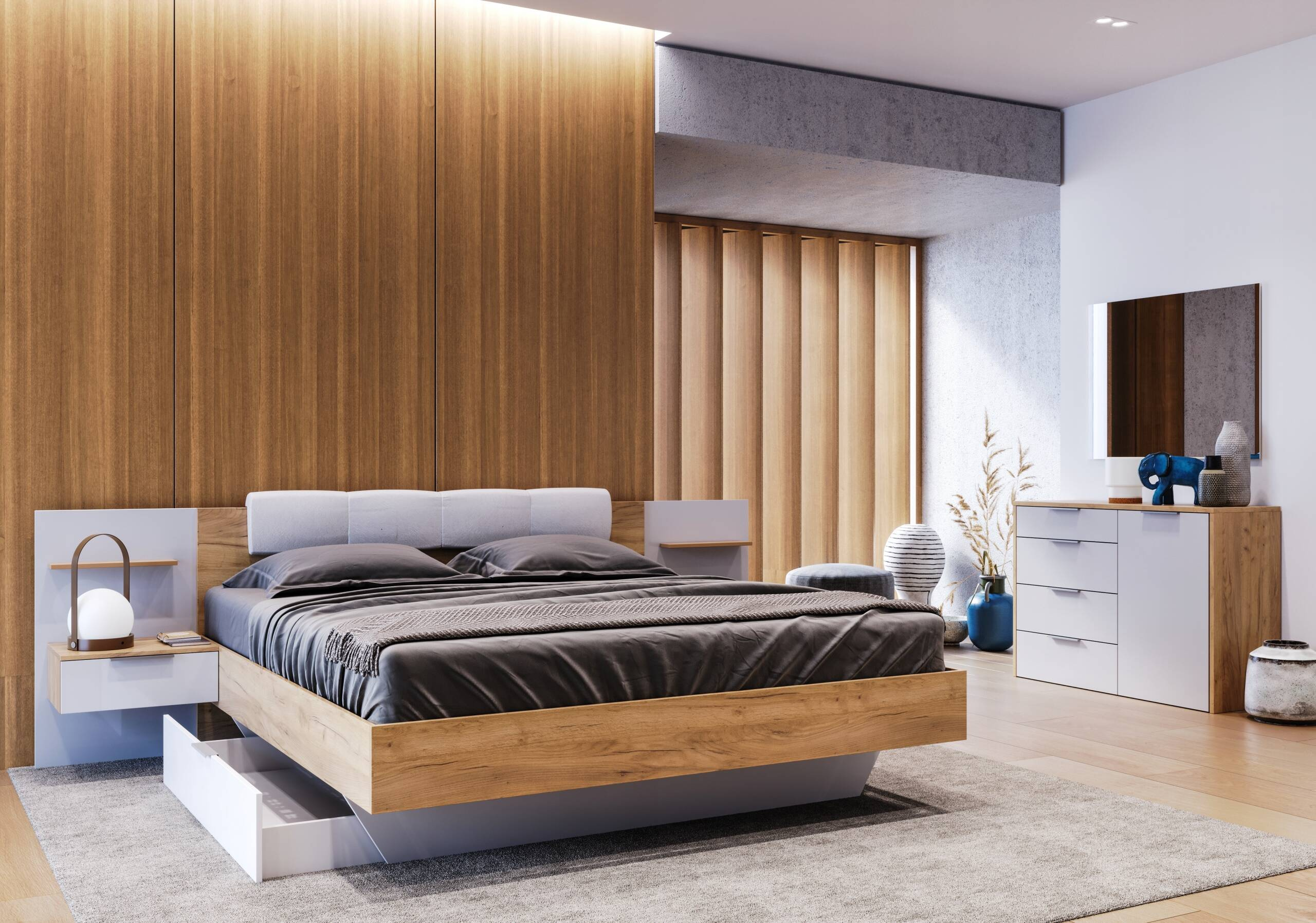 Asti AS-33-WB - Skrzynia Kufer Do Łóżka Sypialnia Tapicerowany Dąb Craft