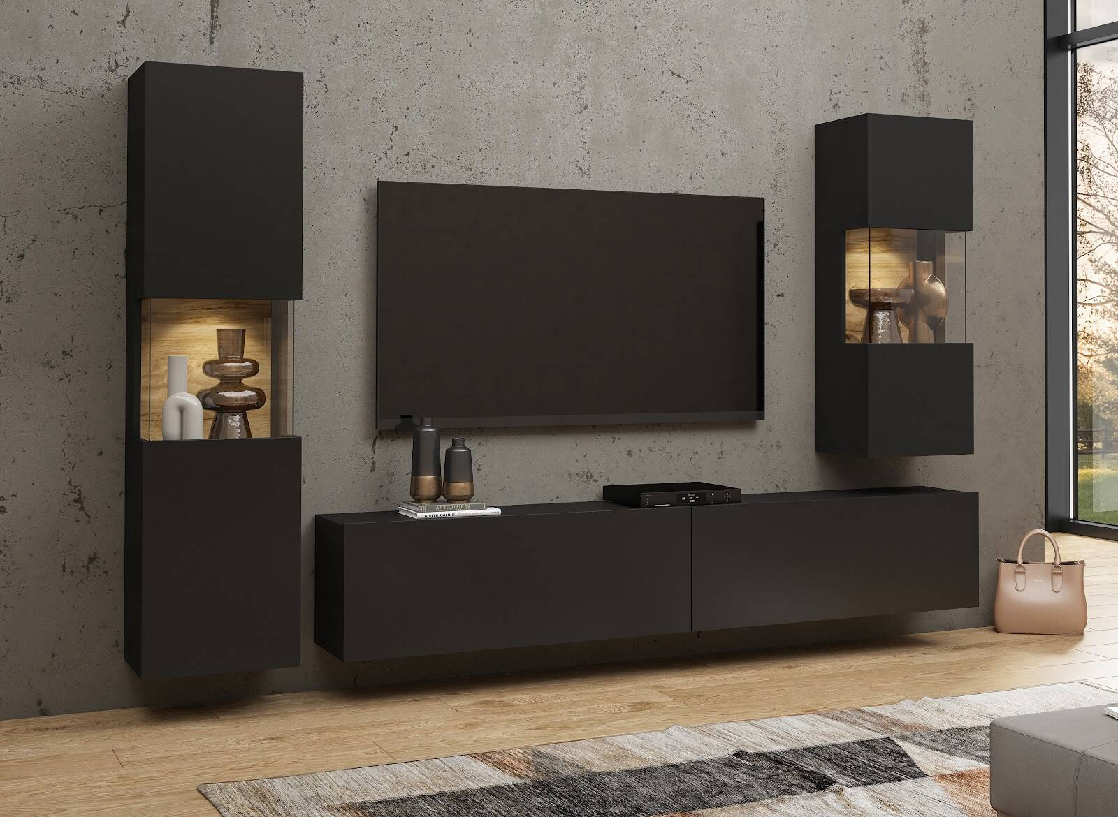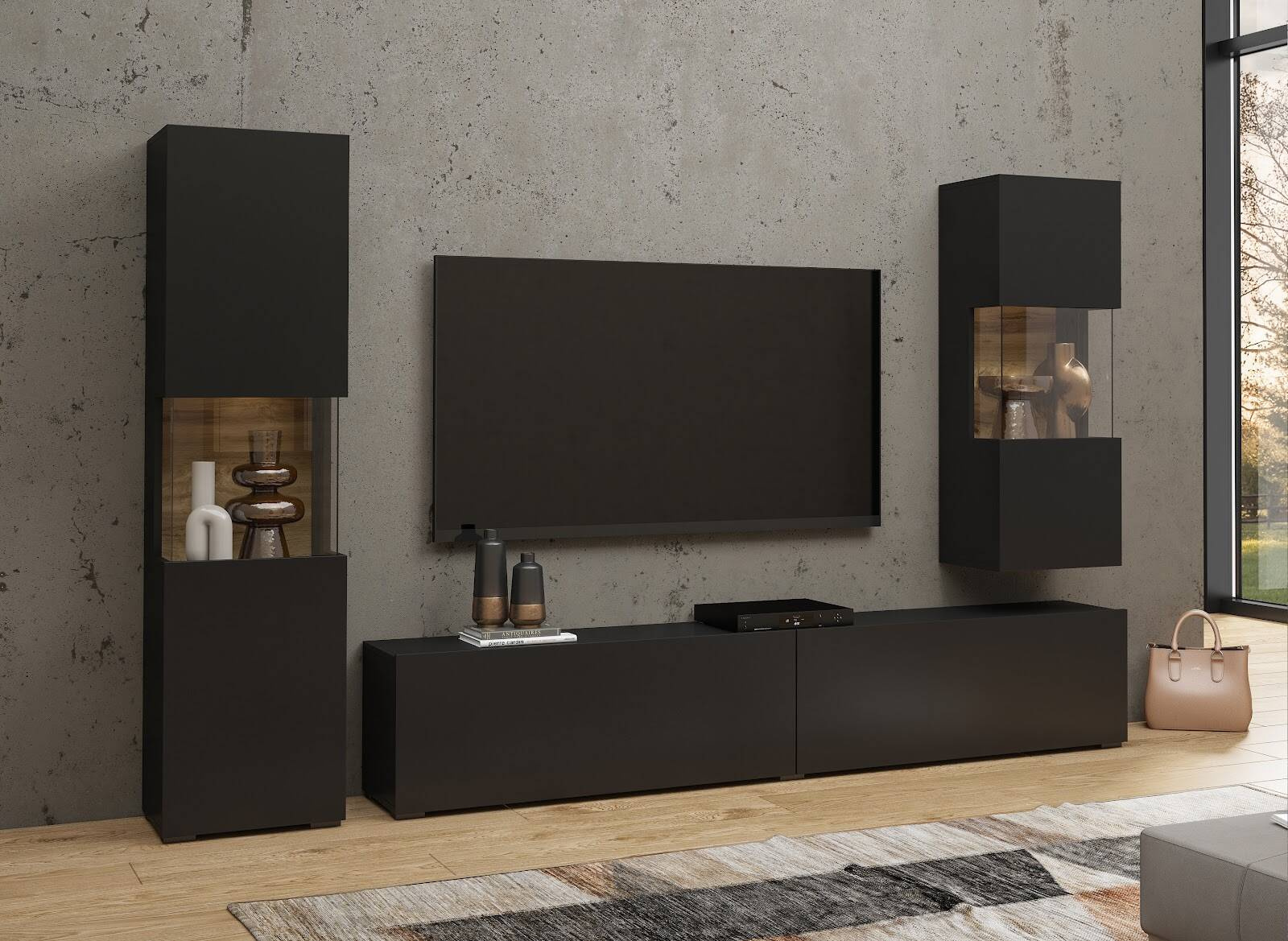 Ava Meblościanka 05+07+40 Czarny / Dąb Wotan