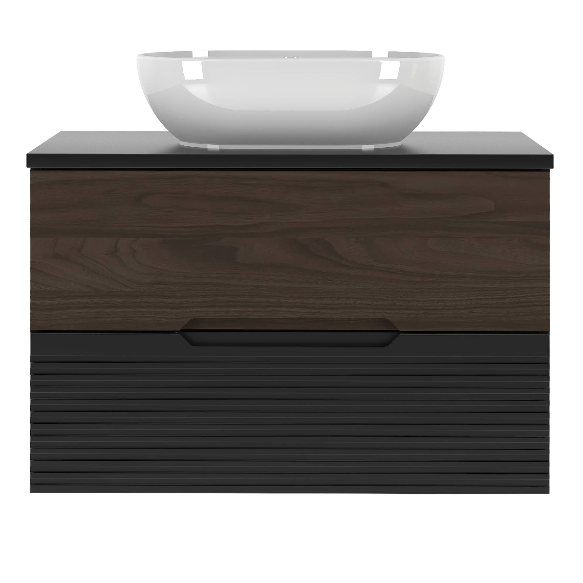 AVELLA-01 - Szafka z Umywalką i Blatem 2S 80cm Czarny Mat Orzech Zestaw-2