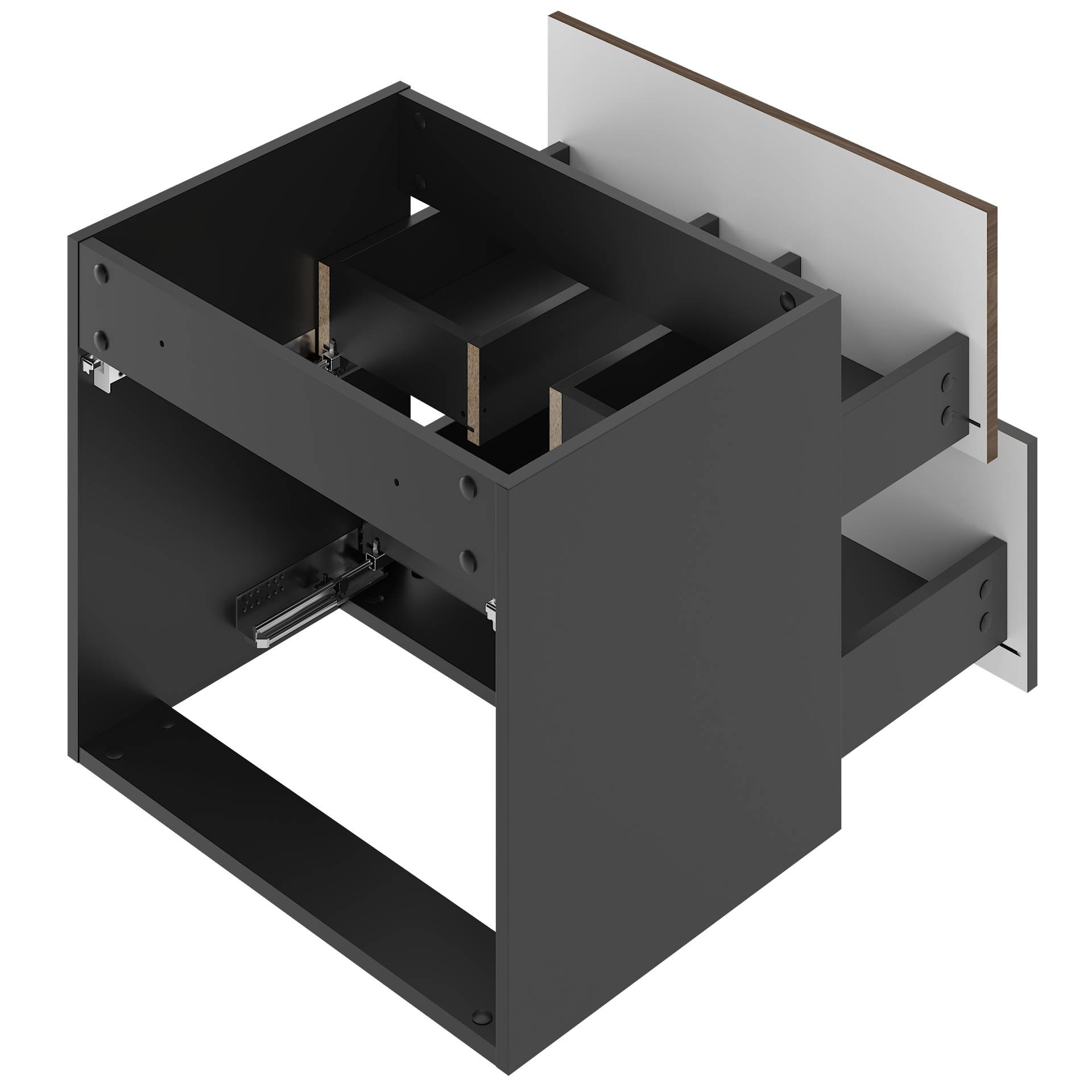Szafka pod umywalkę AVELLA-02 marki Megstyl to stylowe połączenie czarnego matu i orzecha. Wykonana z płyty MDF i laminowanej, z cichym domykiem szuflad. Idealna do nowoczesnych łazienek, łatwa w samodzielnym montażu.