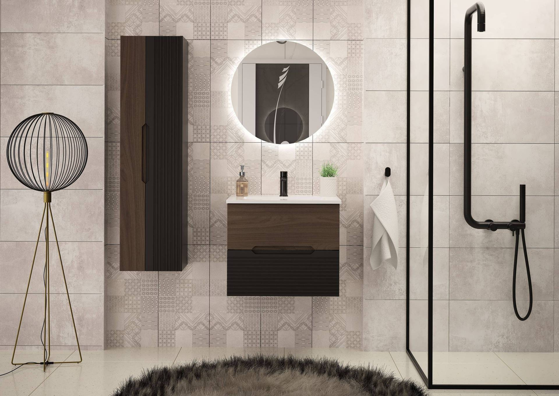 Avelia-02 to idealne połączenie elegancji i nowoczesności, doskonałe do każdej łazienki pragnącej niepowtarzalnego charakteru. Szafka pod umywalkę w kolorze czarny mat z orzechowymi akcentami to wybór dla osób ceniących wyjątkowy styl i dynamiczny wystrój wnętrza. Dzięki połączeniu subtelnej czerni i ciepłego odcienia orzecha, mebel ten wprowadza do łazienki aurę luksusu.