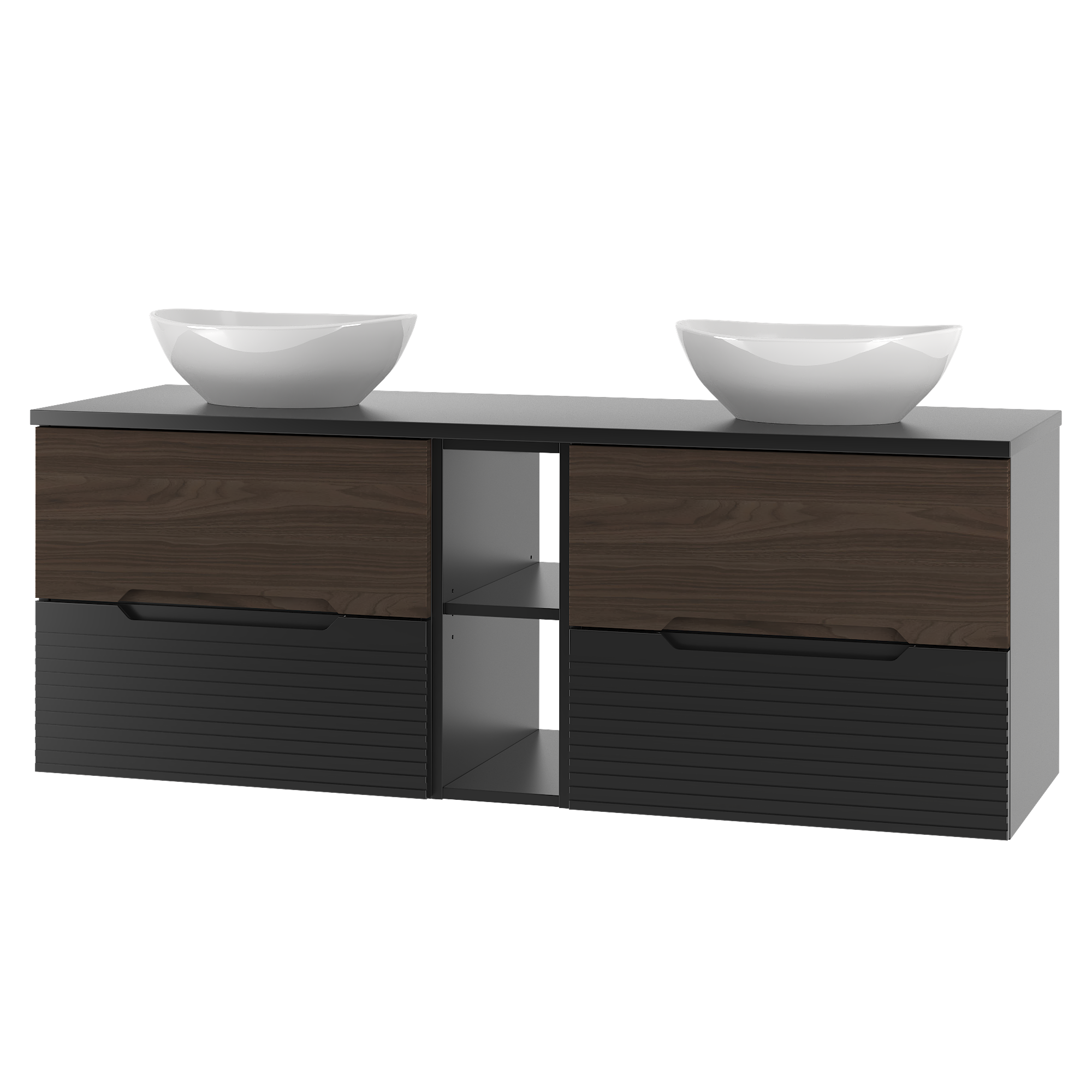AVELLA-02 - Szafka pod Umywalkę z Blatem i Regałem 4S 140cm Czarny Mat Orzech Zestaw-7