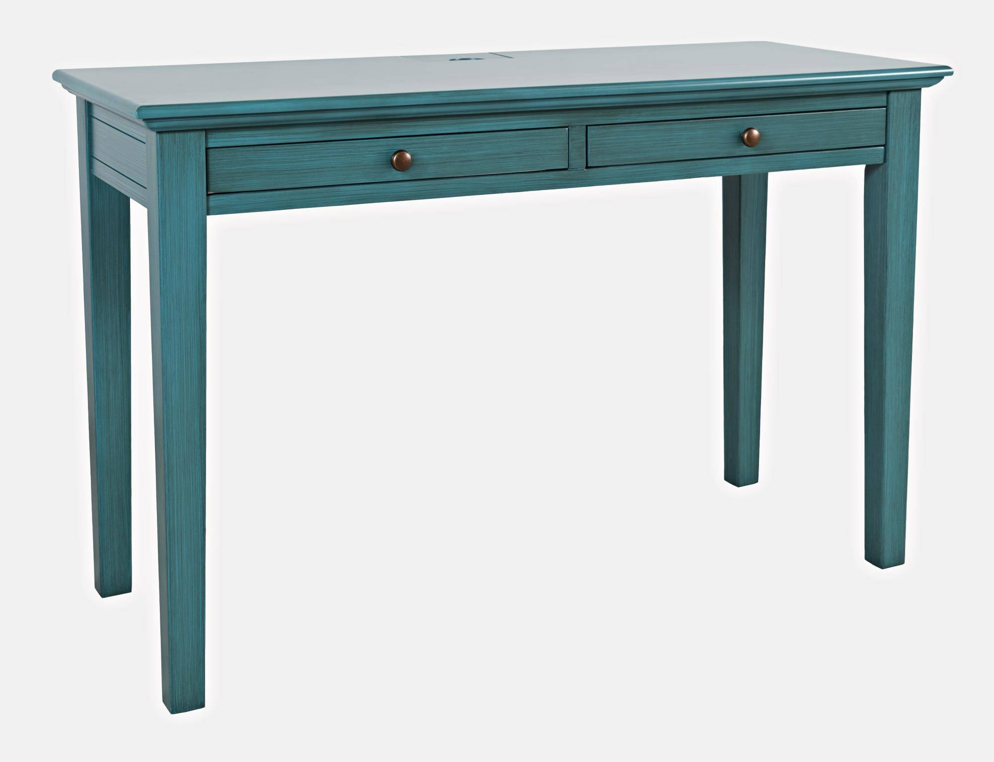 • Biurko Avola w stylu klasycznym o szerokości 122 cm z dwiema szufladami w kolorze zielono-niebieskim. Biurko posiada wbudowane gniazdo i porty usb.