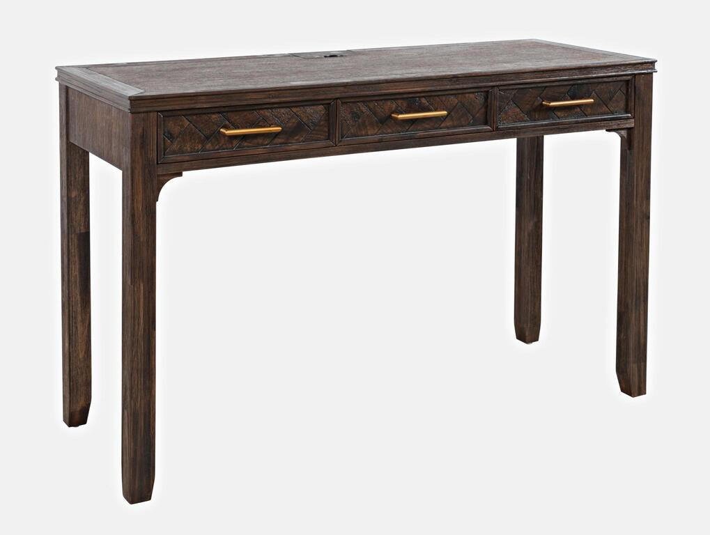 - Biurko Avola AV1756-48 marki Livinhill to elegancki mebel w klasycznym stylu, wykonany z drewna akacji i forniru w ciemnym brązie. Posiada trzy funkcjonalne szuflady z metalowymi uchwytami oraz wbudowane gniazdo i porty USB, idealne do pracy i nauki.