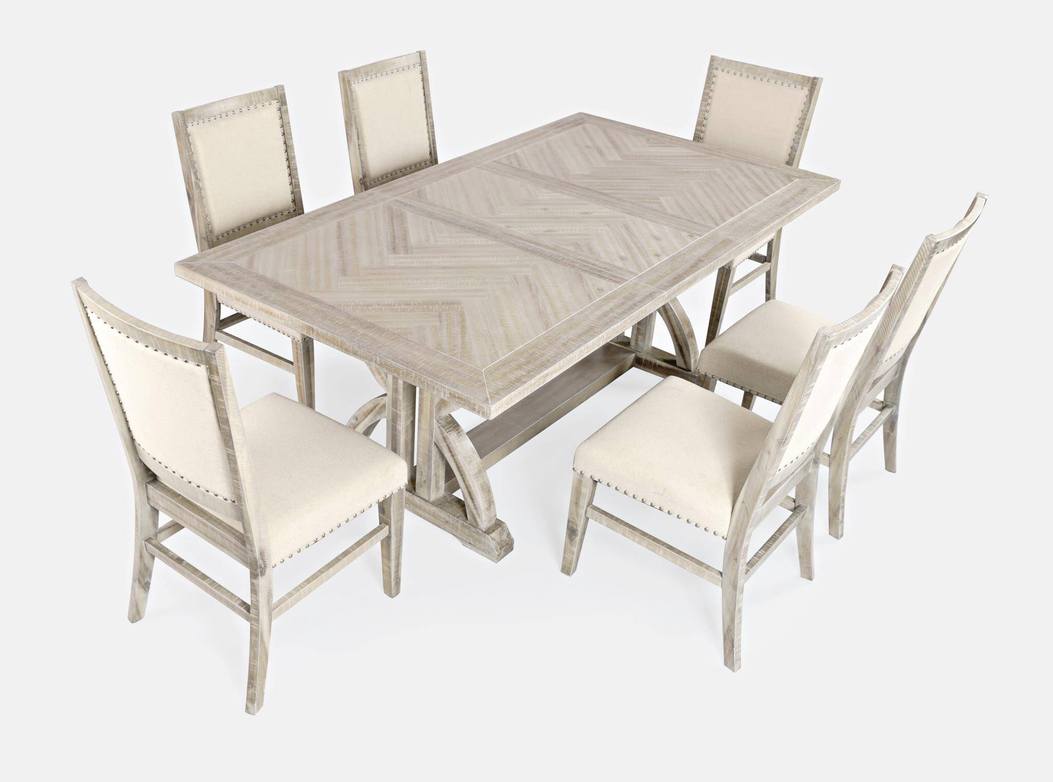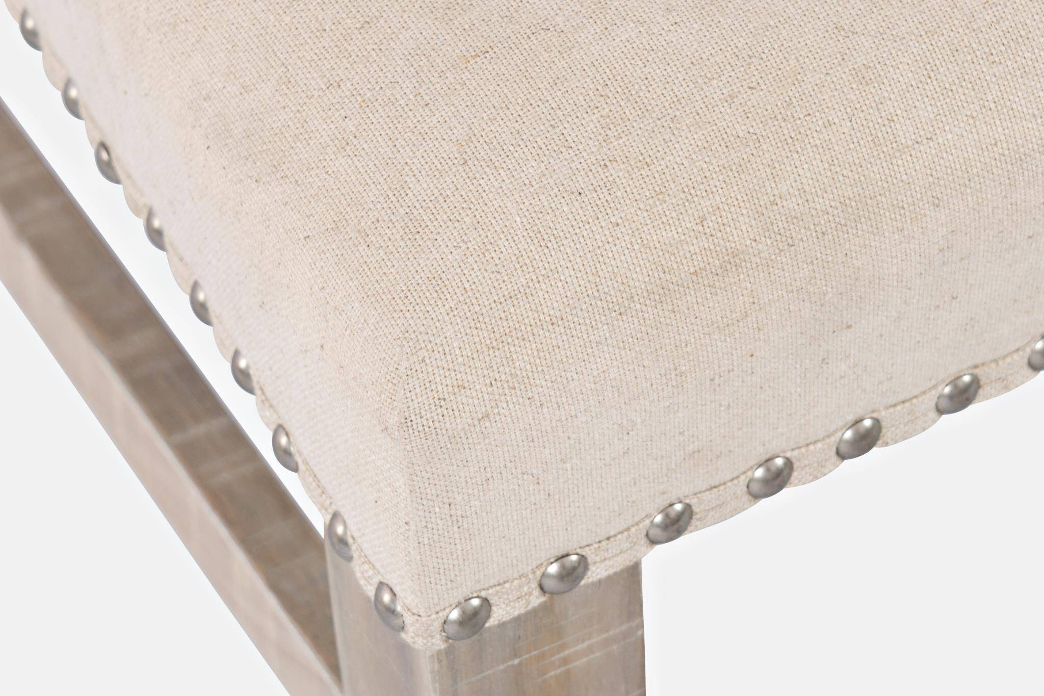 - Krzesło łączy prosty design z surowym wykończeniem. Tapicerka z ćwiekami dodaje mu niepowtarzalnego charakteru, idealnie wpisując się w rustykalny styl.
