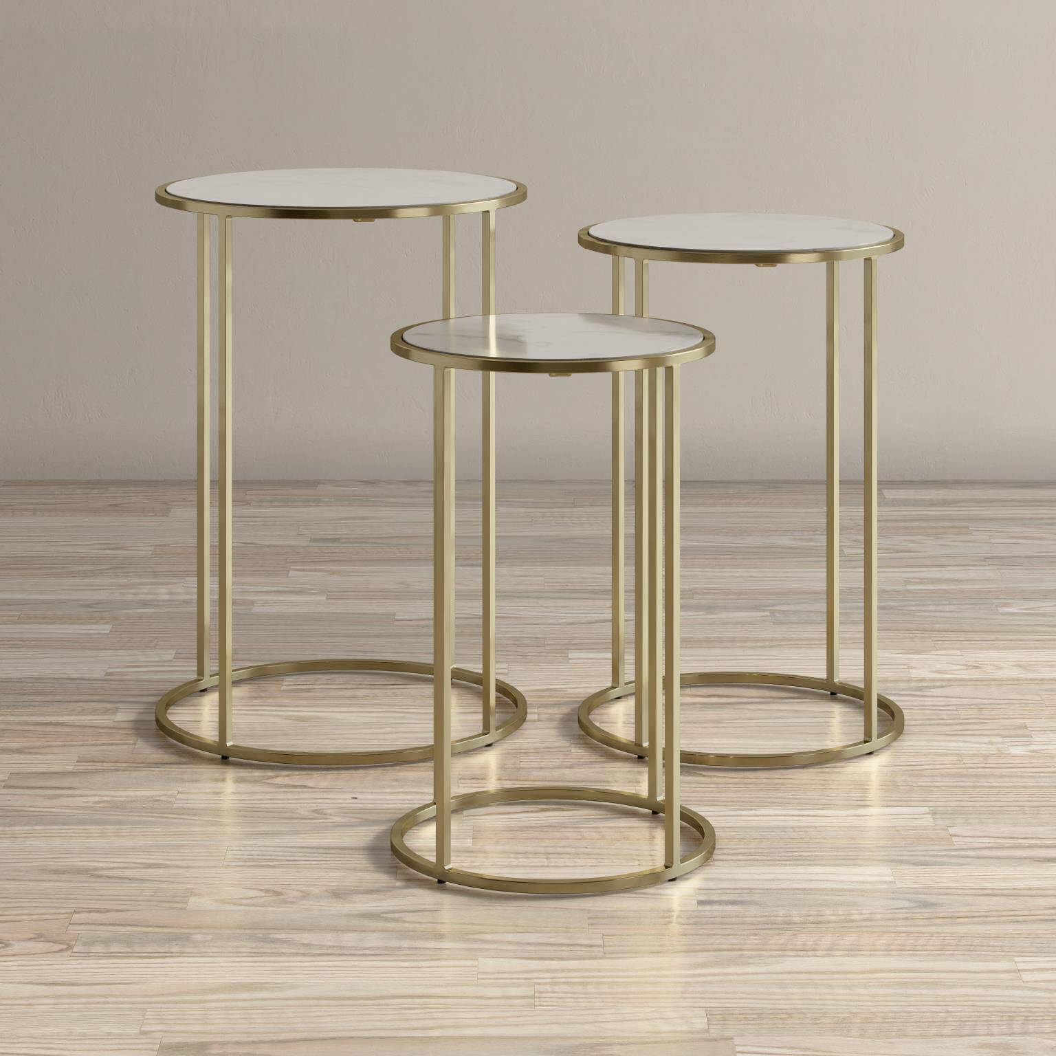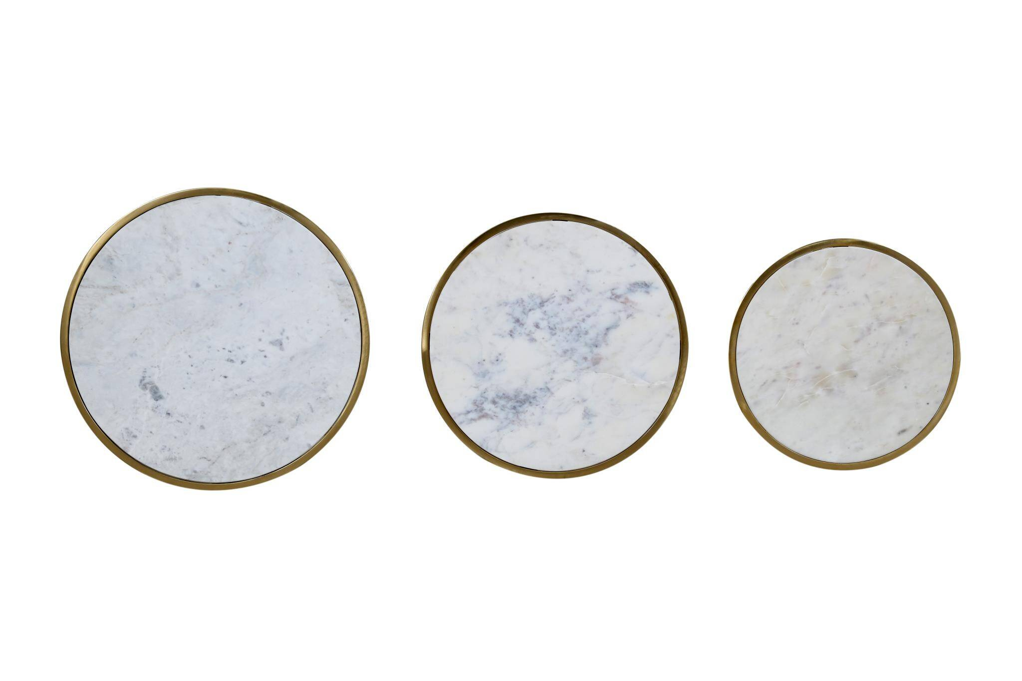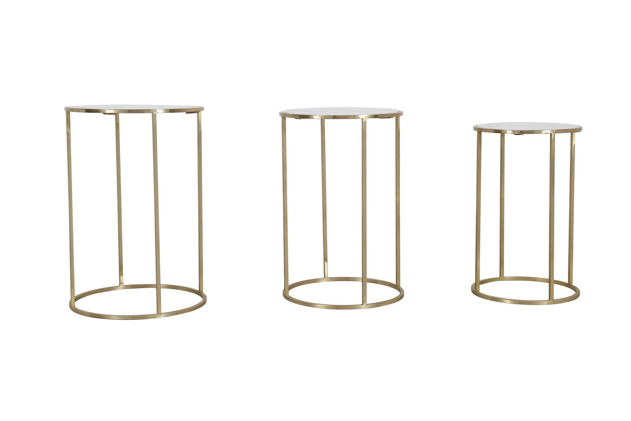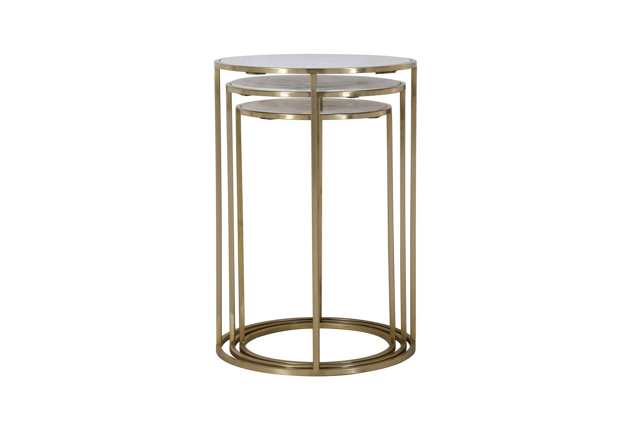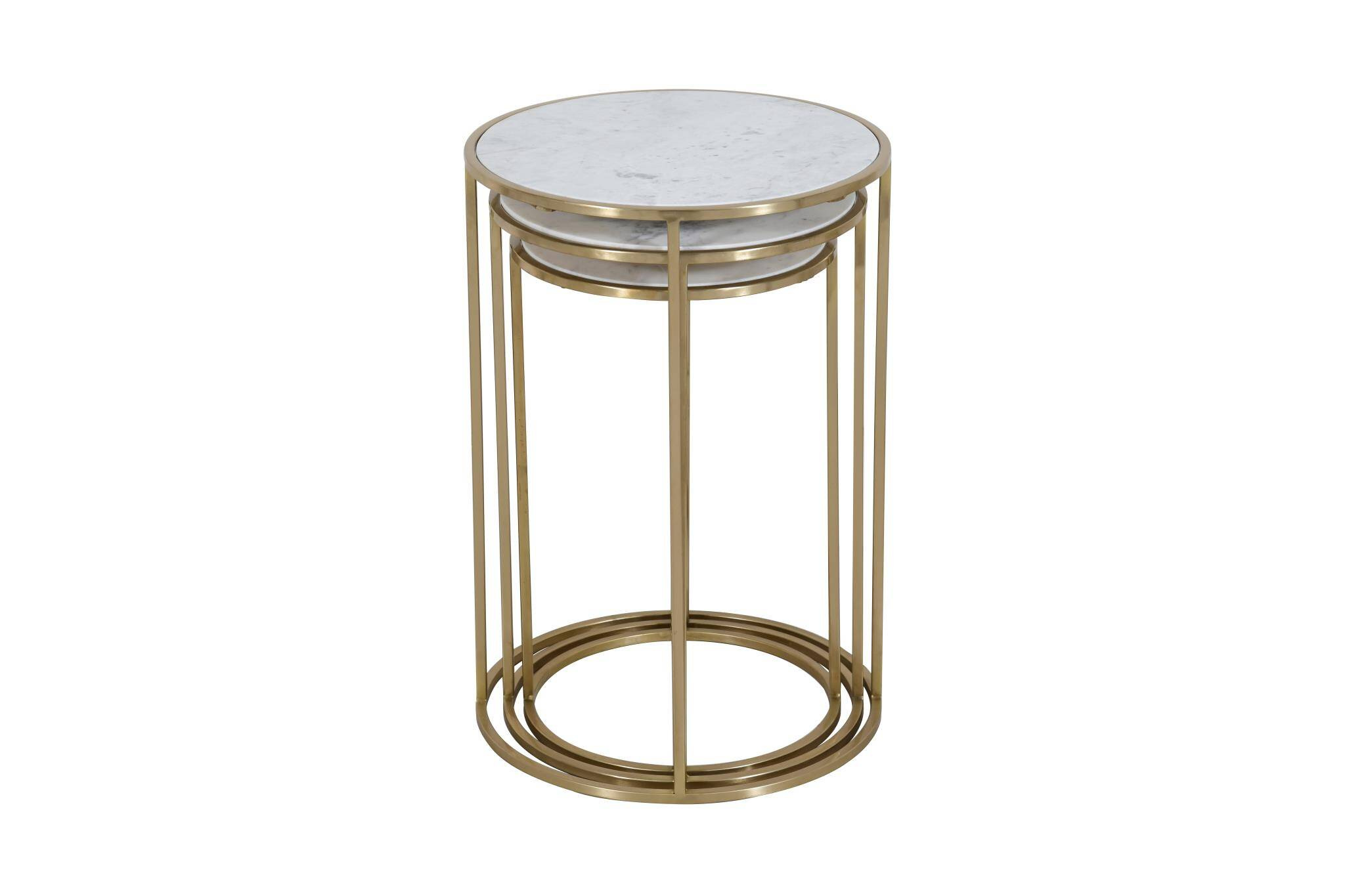 - Elegancki zestaw stolików Livinhill Avola AV2130-39. Białe, marmurowe blaty dodają luksusu, a złote, metalowe podstawy o okrągłym kształcie zapewniają stabilność. Praktyczne rozwiązanie – mniejsze stoliki można schować w największym. Idealne do nowoczesne