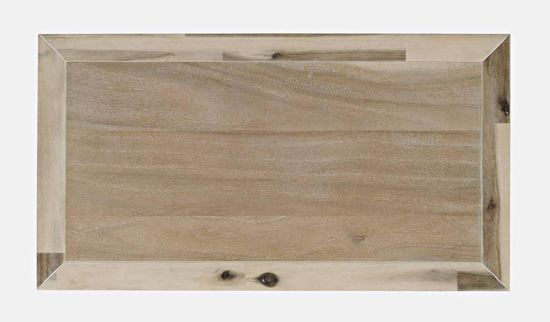• Komoda o szerokości 84 cm wykonana z drewna akacji w kolorze jasnobrązowym na solidnych nóżkach w kolorze czarnym. Fronty z intarsją nawiązujące do parkietowego wzoru świetnie podkreślają prostą formę mebla.