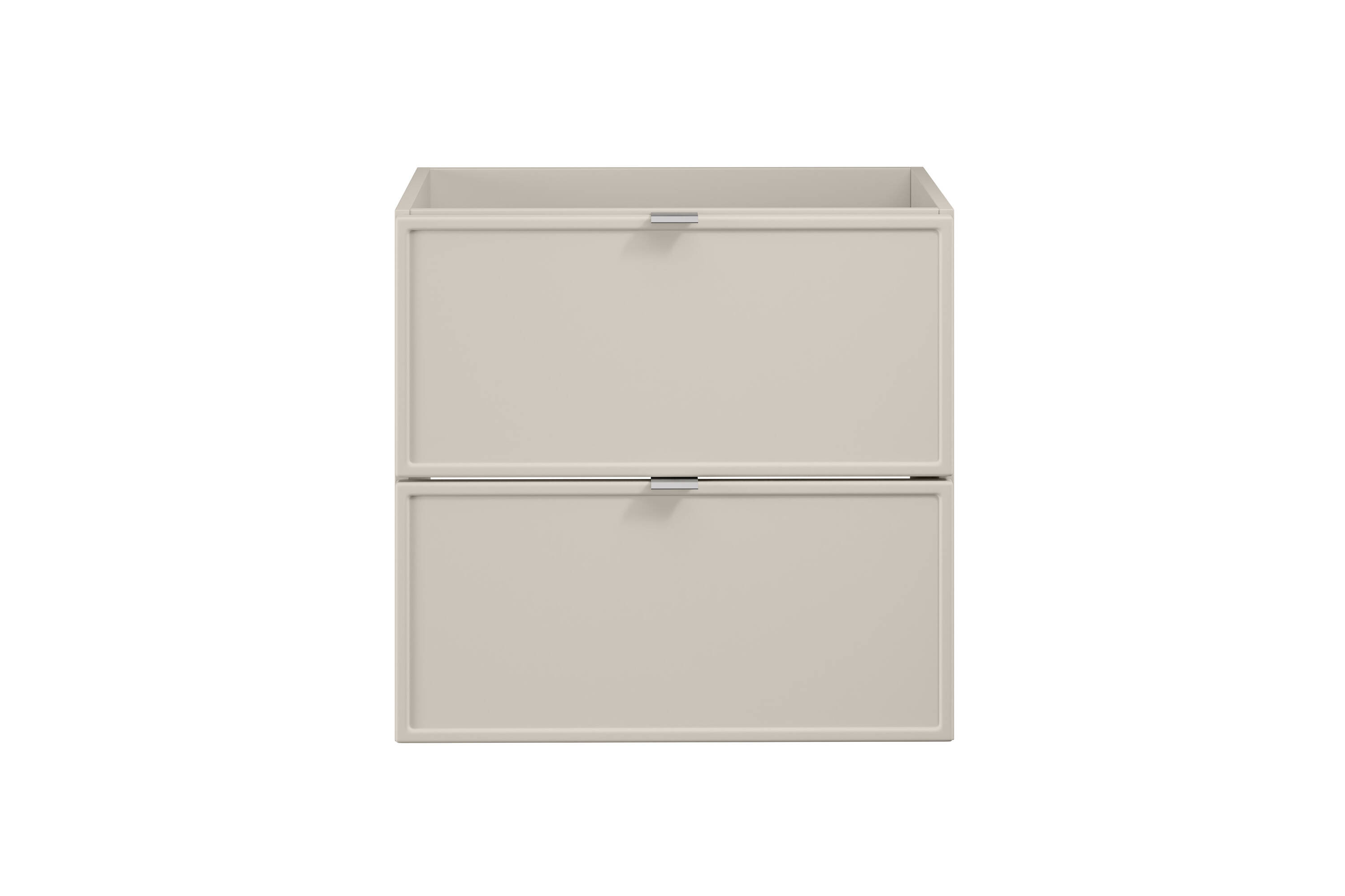 Elegancka szafka pod umywalkę Bella Cashmere o szerokości 60 cm, wyróżniająca się kaszmirowym, matowym wykończeniem. Dwie praktyczne szuflady z frezowanymi frontami MDF zapewniają elegancję i funkcjonalność. Montaż na ścianie, pakiet montażowy w zestawie.