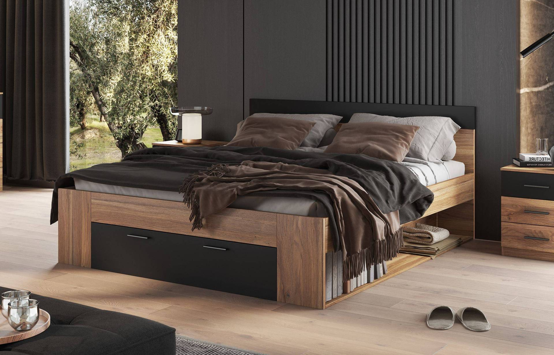 Beta – Łóżko 180/200 cm z Szufladami Dąb Mauvella Czarny mat