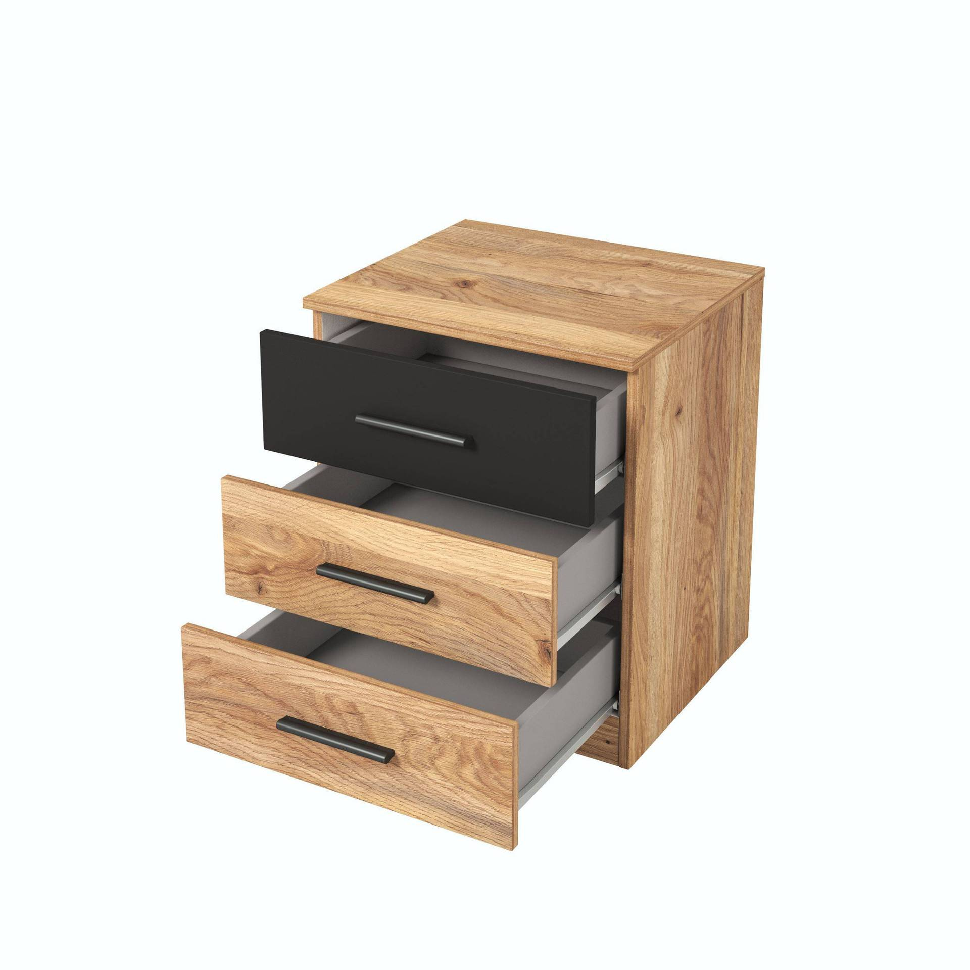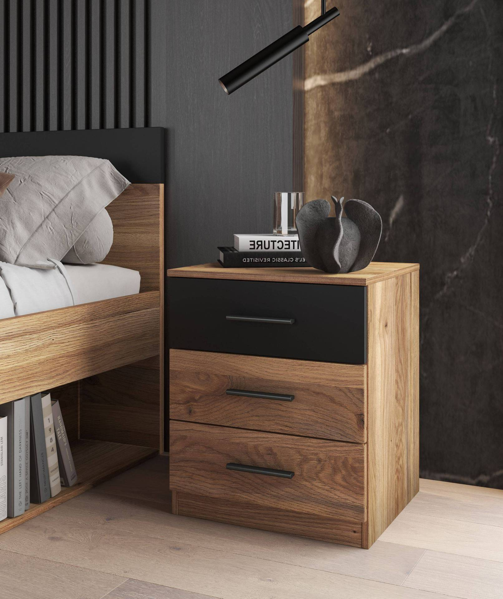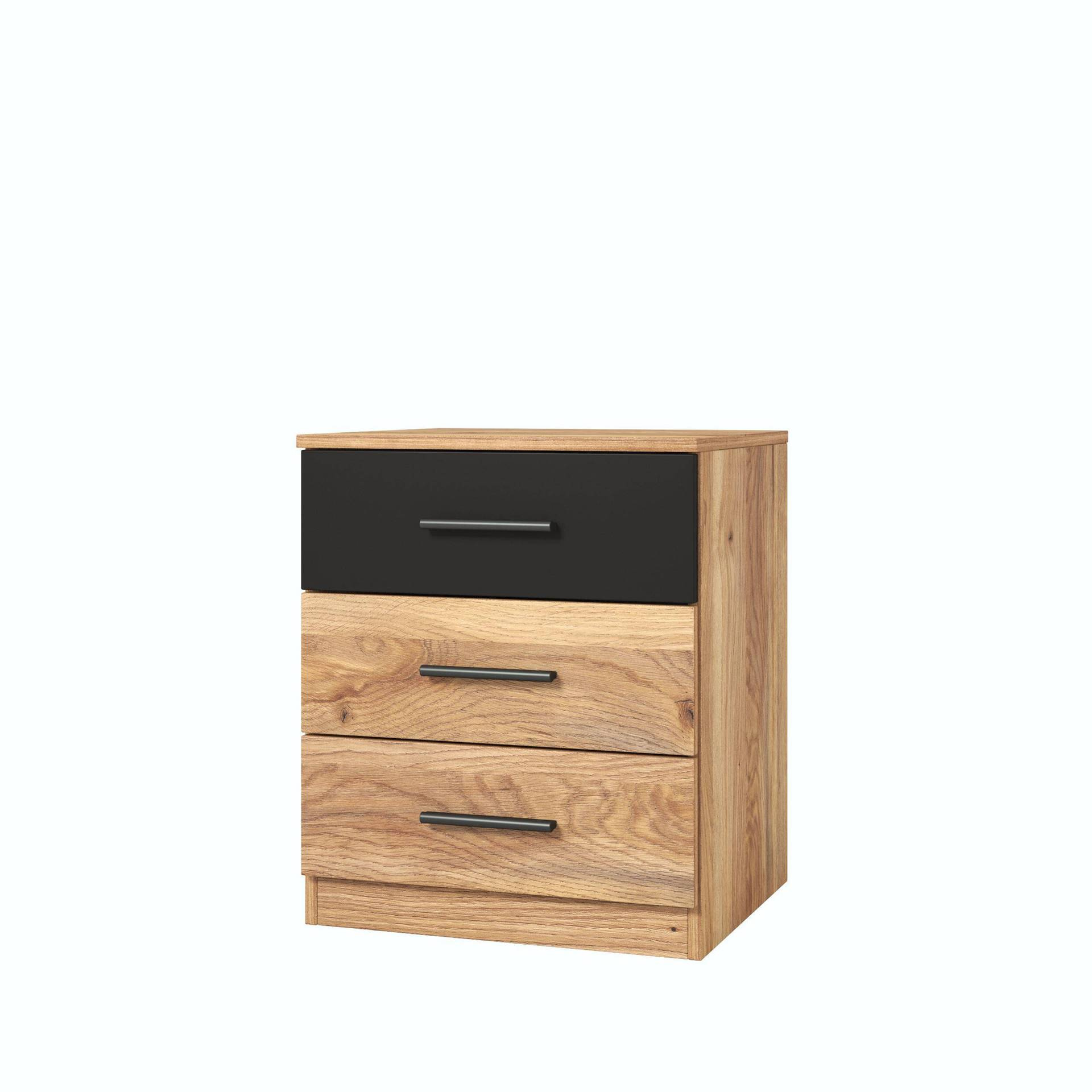 Beta – Szafka Nocna 3 Szuflady Dąb Mauvella Czarny mat