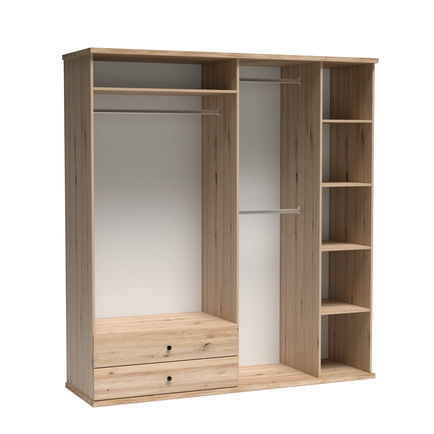 Szafa 4D2S CALI-24 od Jarstol to nowoczesne połączenie funkcjonalności i loftowego stylu. Naturalny kolor Artisan w zestawieniu z czarnymi uchwytami oraz dużym lustrem optycznie powiększa przestrzeń, a solidne materiały zapewniają trwałość.