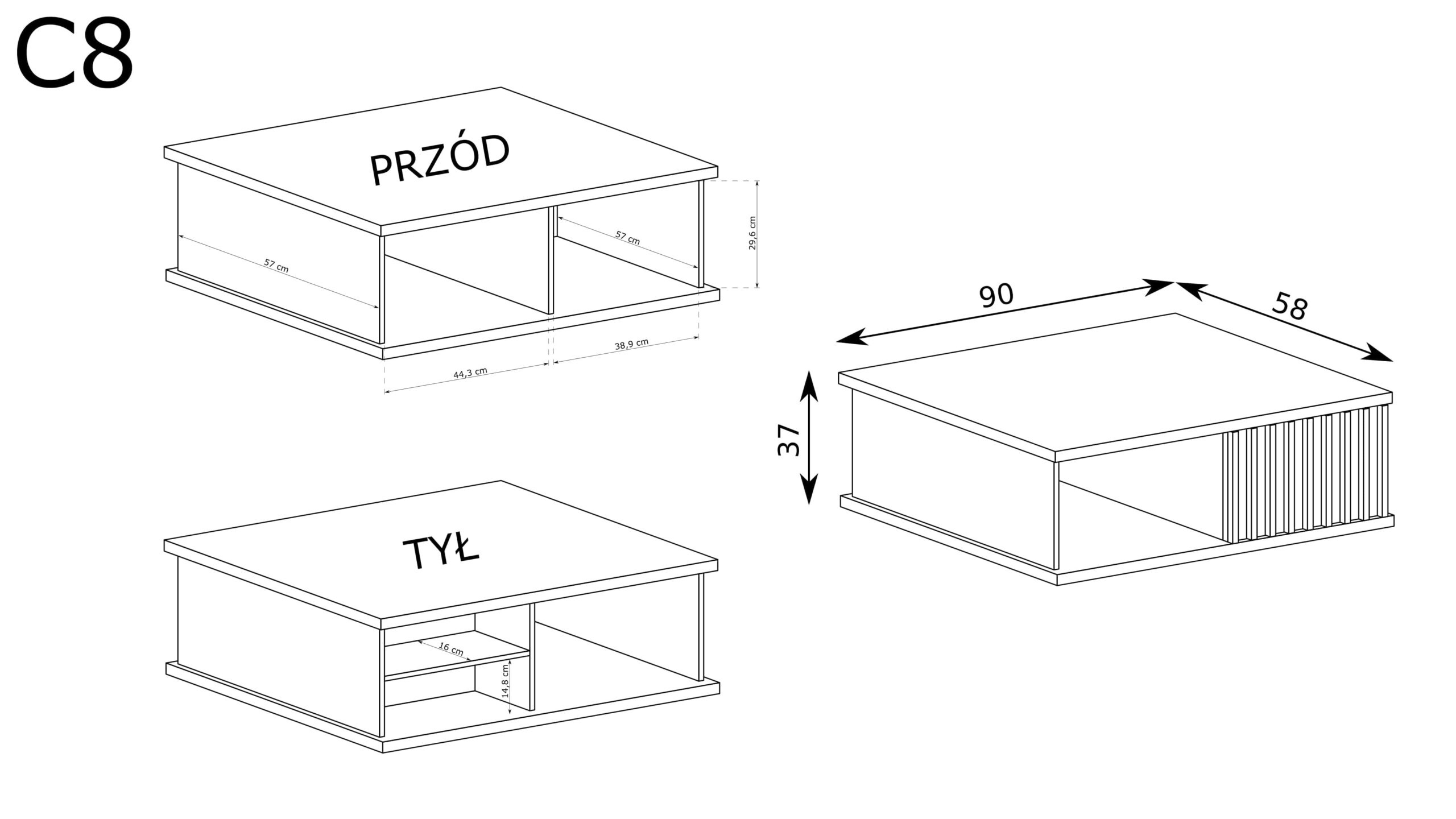 Montaż stolika jest prosty i intuicyjny, co pozwala zaoszczędzić Twój czas. Możesz samodzielnie złożyć swój nowy mebel w kilka chwil i cieszyć się jego codziennym użytkowaniem. Stolik Kawowy CALI-8 to nie tylko mebel, ale również połączenie praktyczności z wyrafinowanym stylem, który z pewnością przyciągnie wzrok każdego gościa.