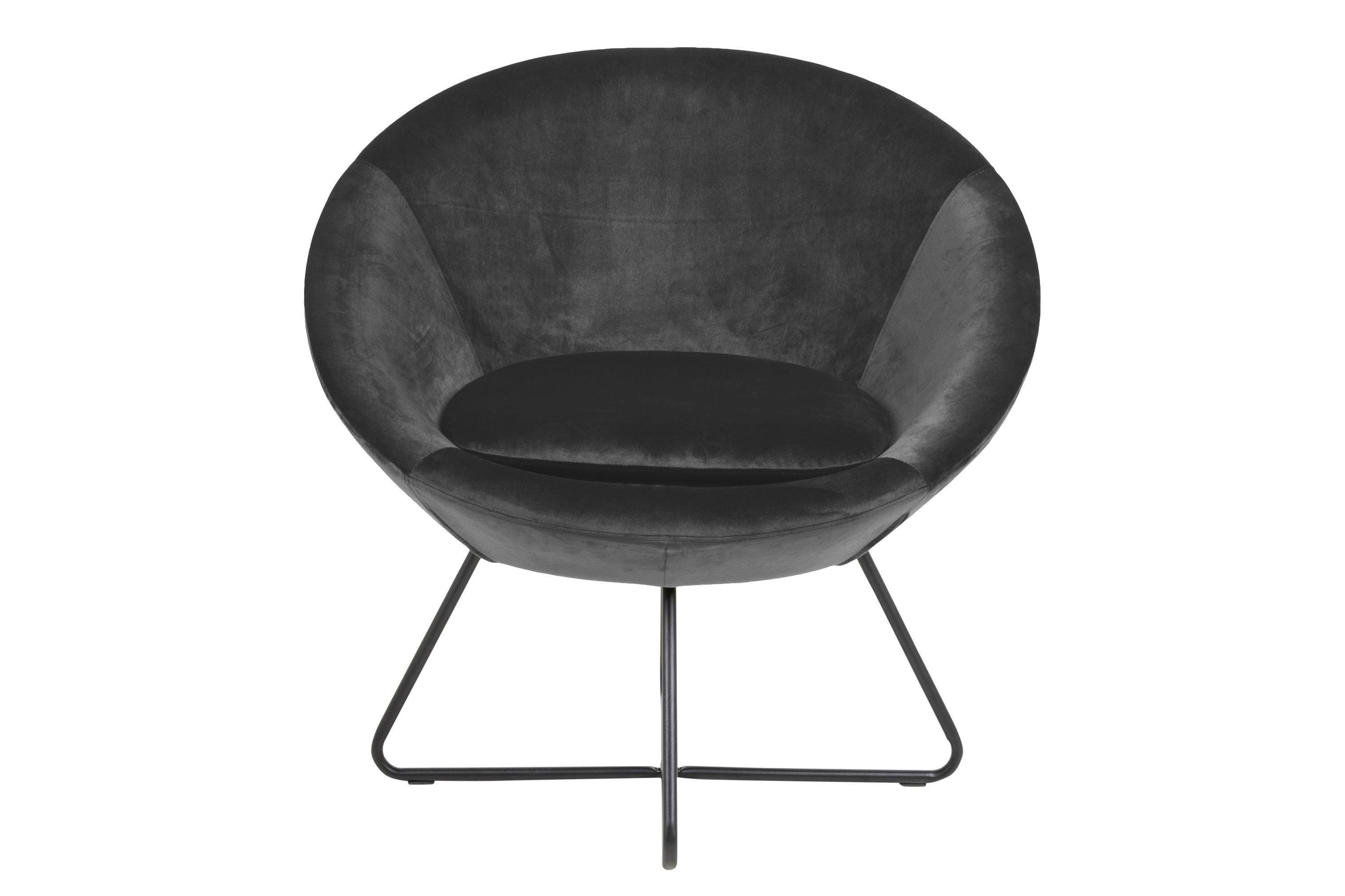 Wygodny fotel Center z obszernym siedziskiem obszytym welurową tkaniną, na metalowej podstawie.