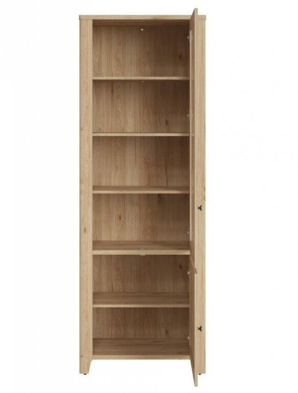 Wysoka na 206,3 cm i szeroka na 73,2 cm, z głębokością 42 cm, witryna Cestino została zaprojektowana z myślą o tych, którzy cenią sobie zarówno estetykę, jak i funkcjonalność. Materiały użyte do jej produkcji, czyli wytrzymała płyta laminowana oraz solidna płyta MDF, gwarantują stabilność oraz długotrwałość użytkowania, zachowując przy tym naturalne wybarwienie i ciepło naturalnego drewna.