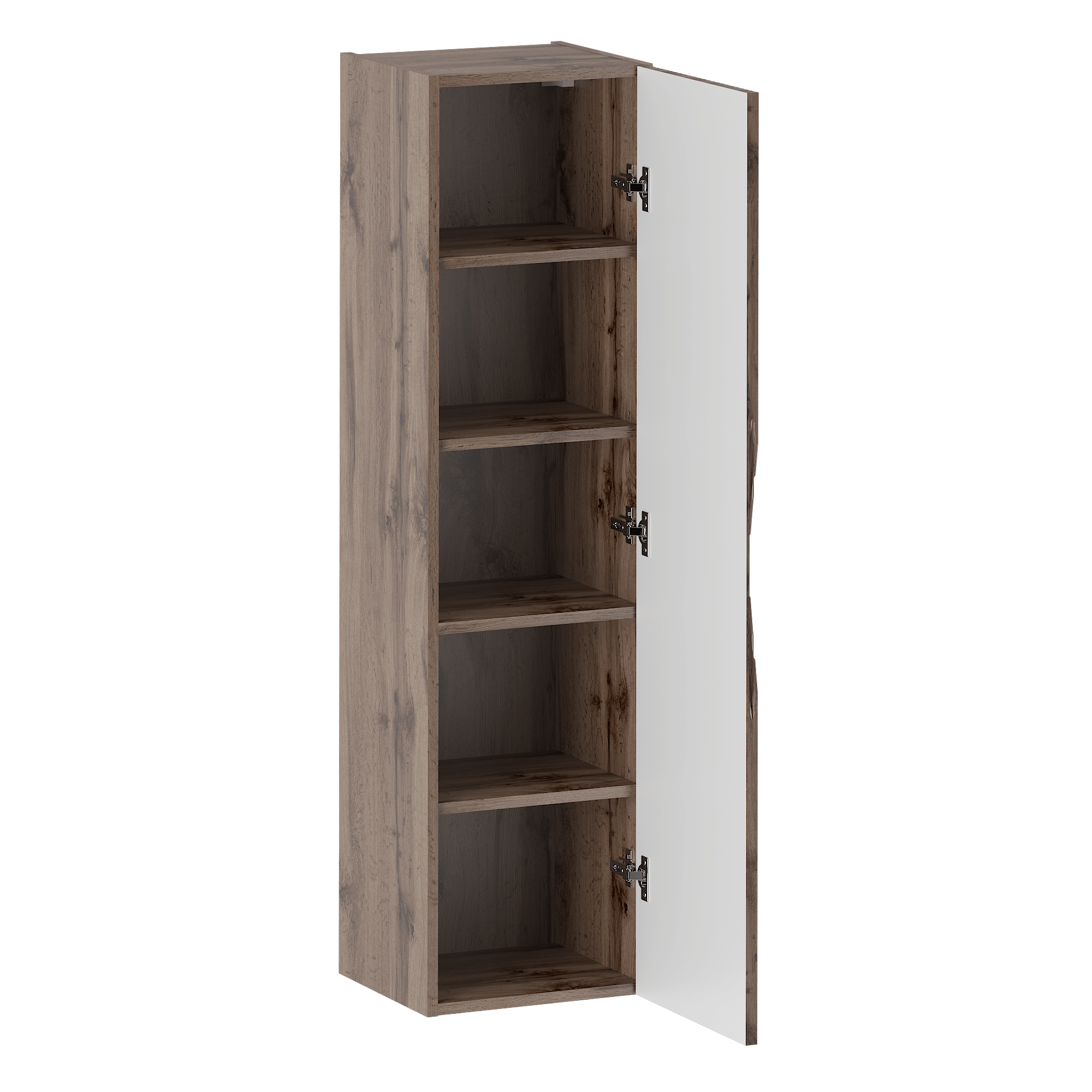 Słupek CLEO-03 to elegancki, wysoki mebel w kolorze dębu Wotan, idealny do nowoczesnych wnętrz. Wykonany z trwałej płyty MDF i laminowanej, oferuje praktyczne przechowywanie. Łatwy montaż na ścianie sprawia, że jest doskonałym rozwiązaniem do każdego pomi