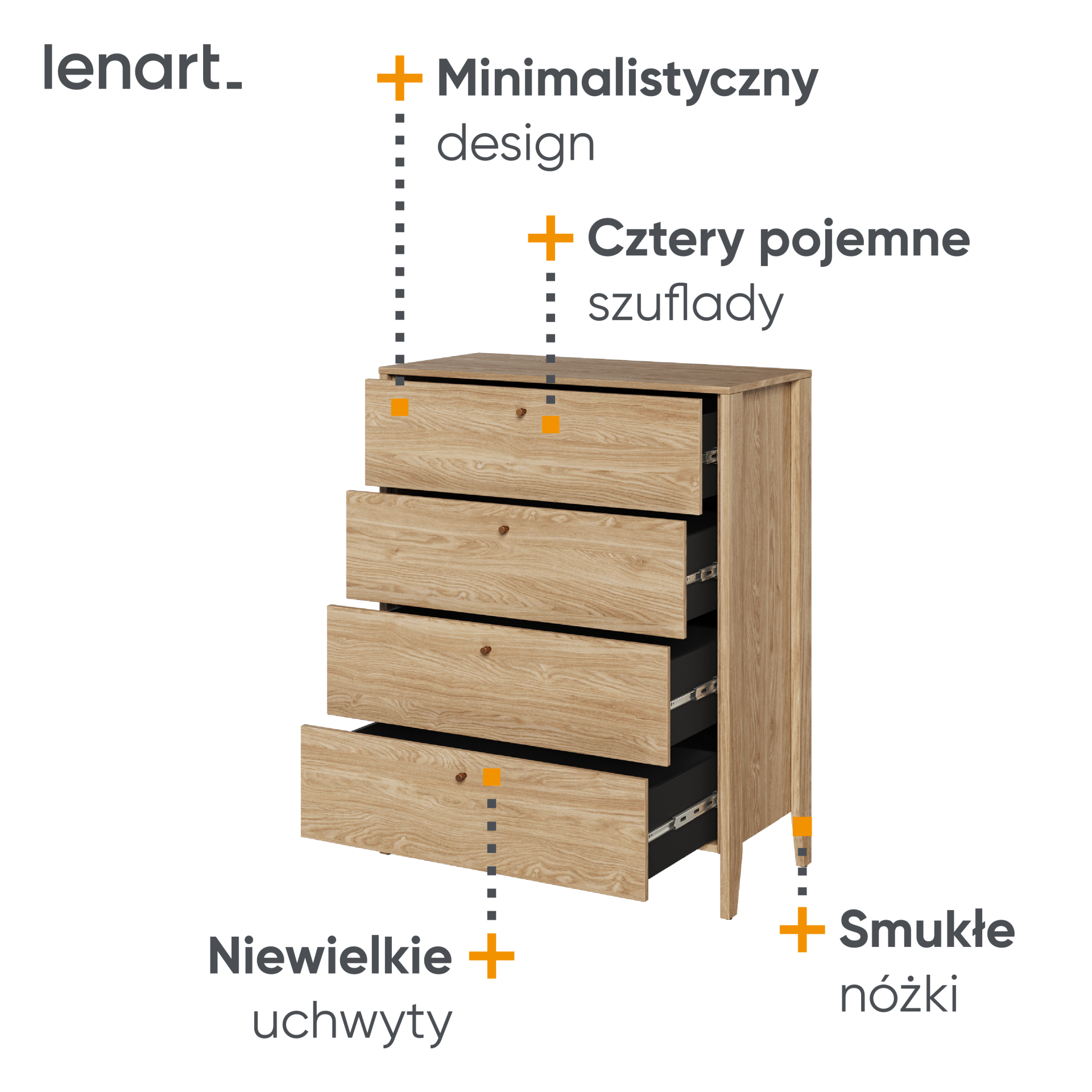 COZY CZ-03 - Komoda 4 Szuflady Dąb Olejowany