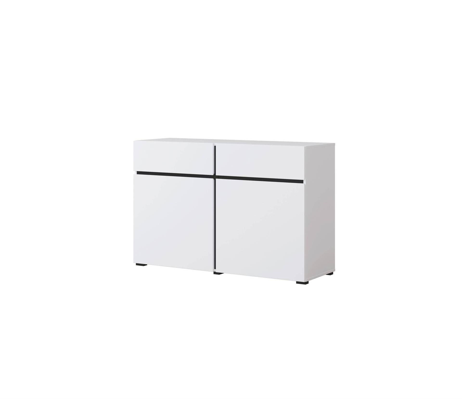 - Nowoczesna komoda Cross od Helvetia to stylowe połączenie białego i czarnego matu. Wykonana z trwałych płyt laminowanych, oferuje 2 drzwi i 2 szuflady z prowadnicami rolkowymi. Idealna do każdego wnętrza, zapewnia funkcjonalność i elegancję.