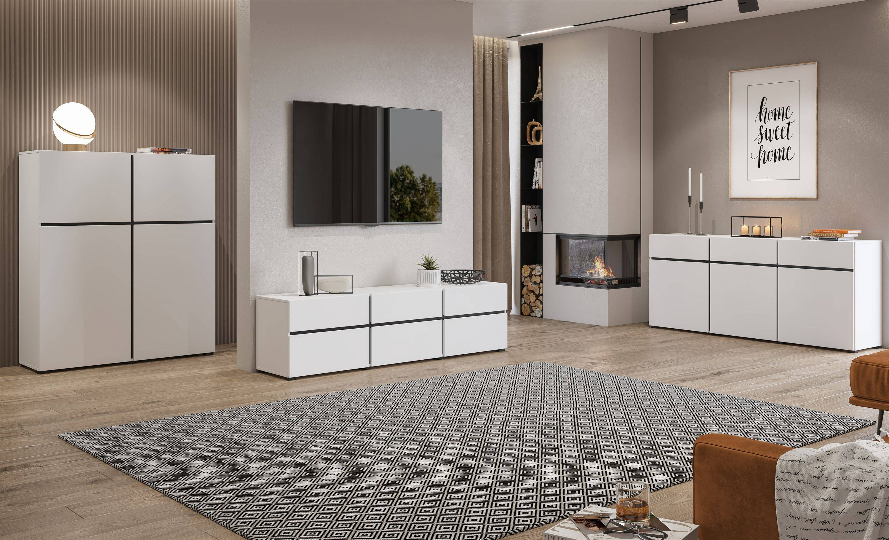 Komoda Cross 3D3S od marki Helvetia to idealne połączenie elegancji i funkcjonalności w jednym meblu, który odświeży każde wnętrze. Jej nowoczesny, minimalistyczny design w kolorach białego i czarnego matu sprawia, że z łatwością wpasuje się zarówno w klasyczne, jak i nowoczesne aranżacje. Stylowe linie oraz kontrastowe wykończenie tworzą wyjątkowy mebel, który przyciągnie uwagę każdego odwiedzającego.