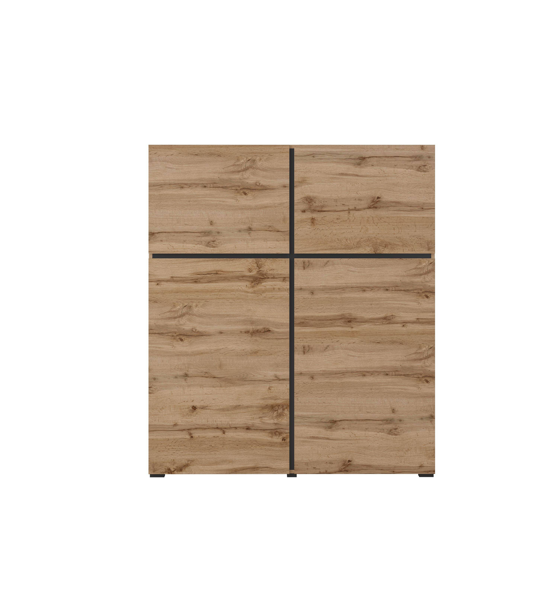 - Elegancka komoda Cross marki Helvetia. Połączenie dębu Wotan z czarnym matem dodaje nowoczesności i klasy. Cztery drzwi z łatwym montażem samodzielnym, idealne na przechowywanie. Doskonały wybór do stylowych wnętrz.