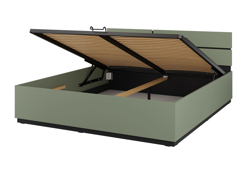 Cross S - Łóżko z Pojemnikiem i Podnoszonym Stelażem 180 cm Zgaszona Zieleń Czarny