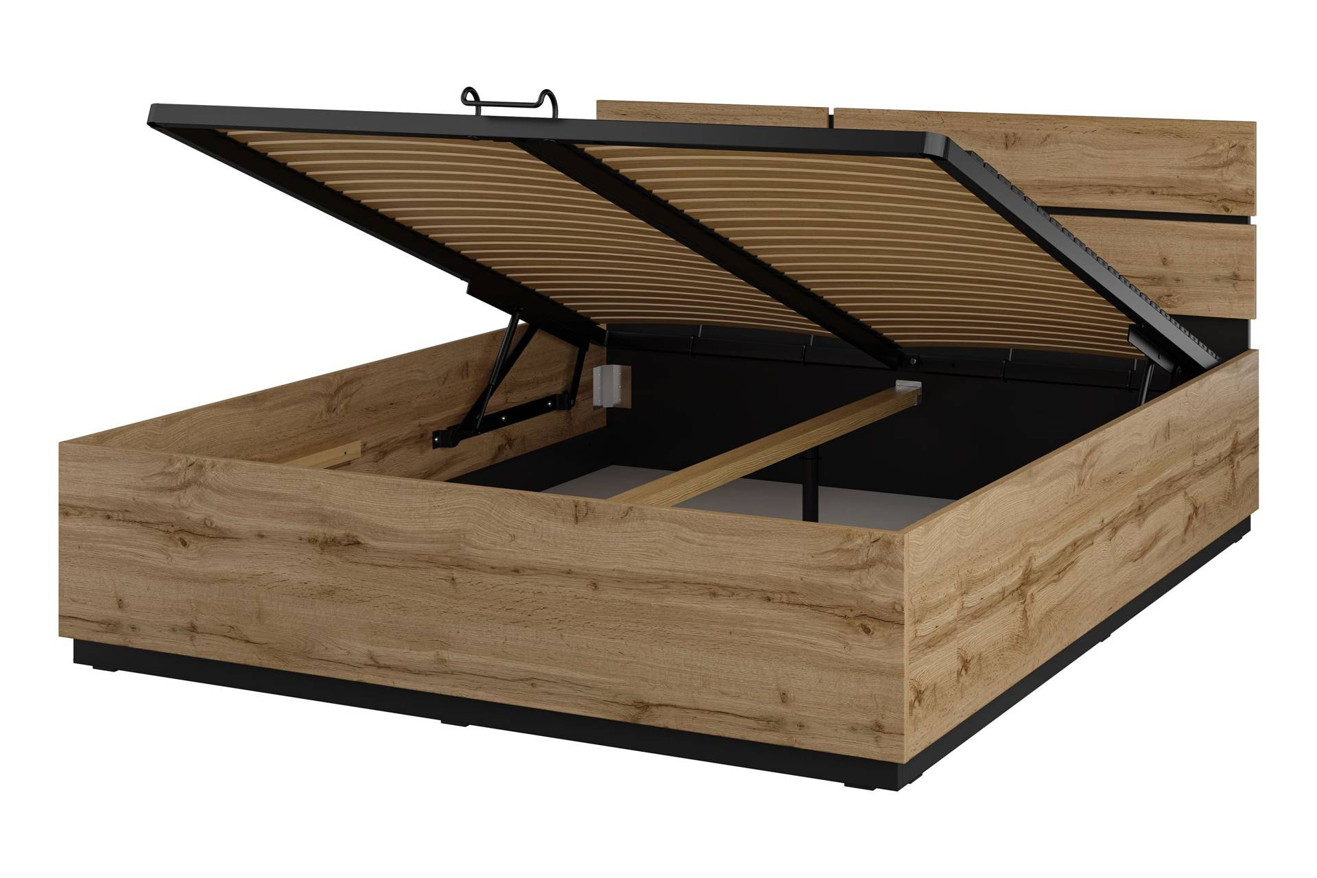 Cross S - Łóżko z Pojemnikiem i Stelażem 160 cm Dąb Wotan Czarny Onyks Mat