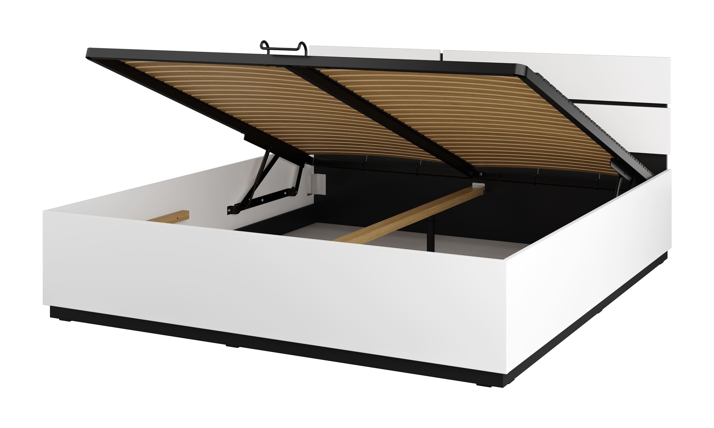 Cross S - Łóżko z Pojemnikiem i Stelażem 180 cm Biały Czarny Onyks Mat