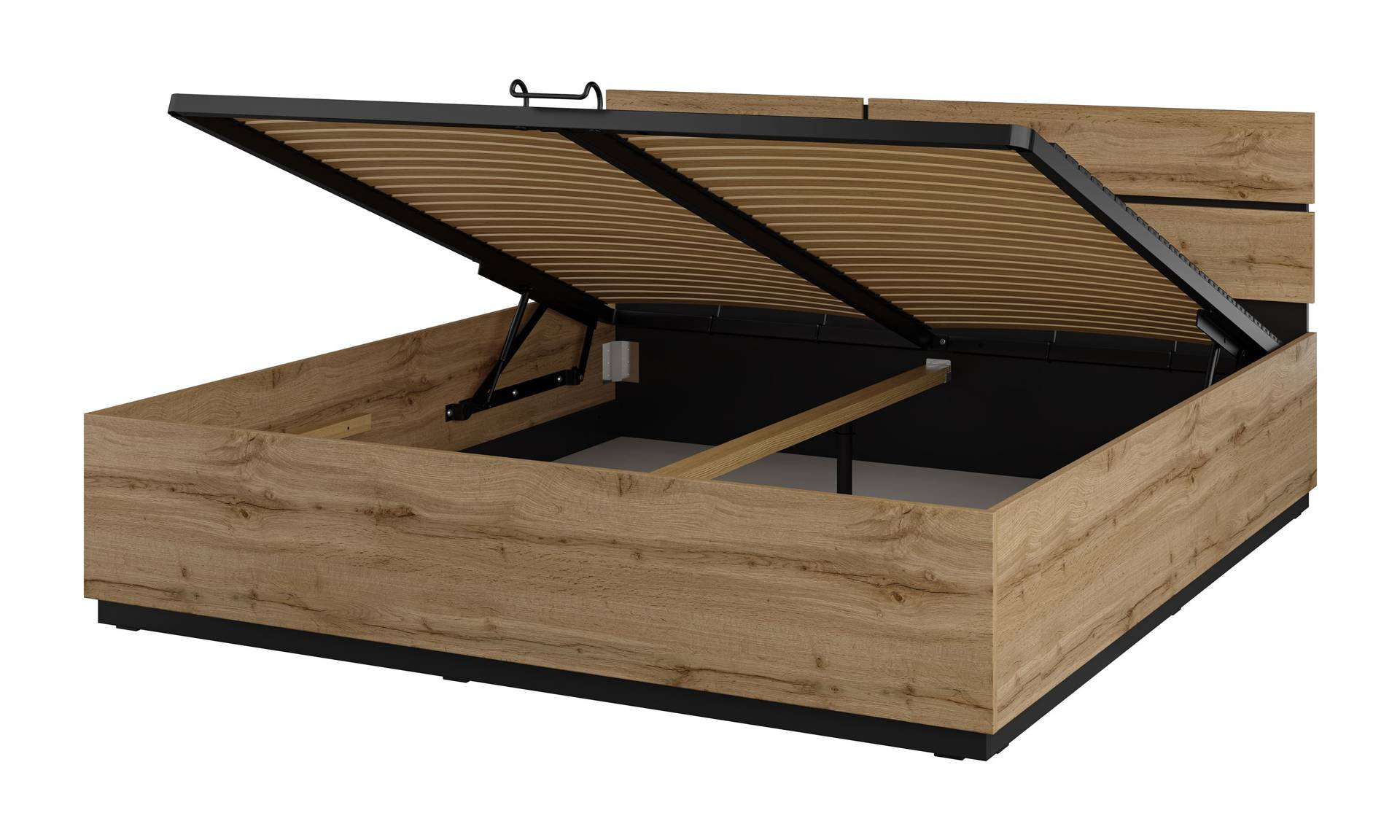 Cross S - Łóżko z Pojemnikiem i Stelażem 180 cm Dąb Wotan Czarny Onyks Mat