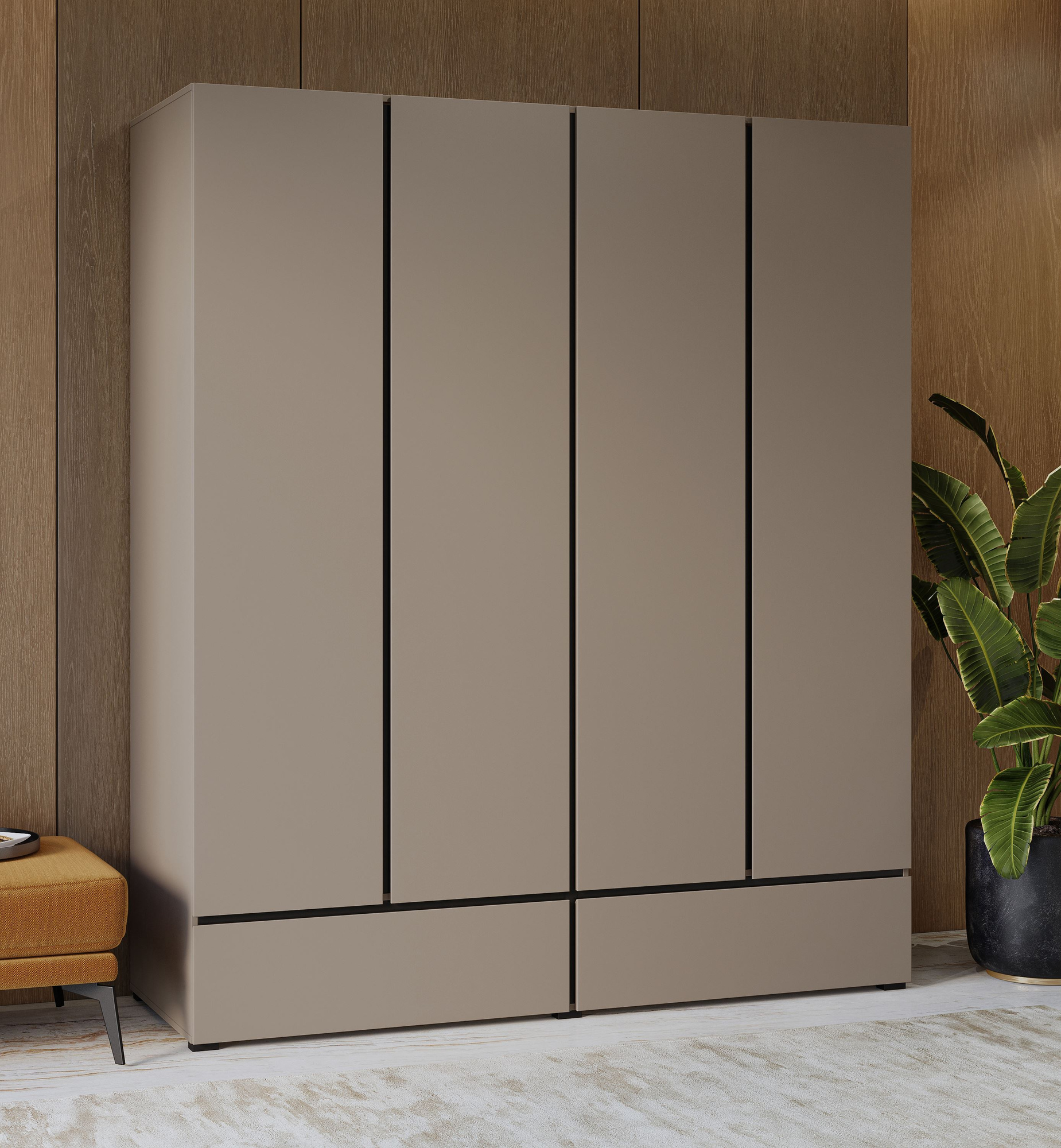 Każdy element tej szafy został starannie zaprojektowany, aby dostarczyć doskonałą organizację Twojego przestrzeni. Dzięki czterem drzwiom i dwóm szufladom, szafa Cross S oferuje mnóstwo miejsca na ubrania, pościel oraz inne niezbędne przedmioty. Wnętrze zachwyca idealnie dopasowanymi półkami, które zapewniają elastyczność w przechowywaniu, dostosowując się do różnych potrzeb użytkownika. Cena za funkcjonalność, jaką oferuje ten mebel, jest nie do przecenienia.