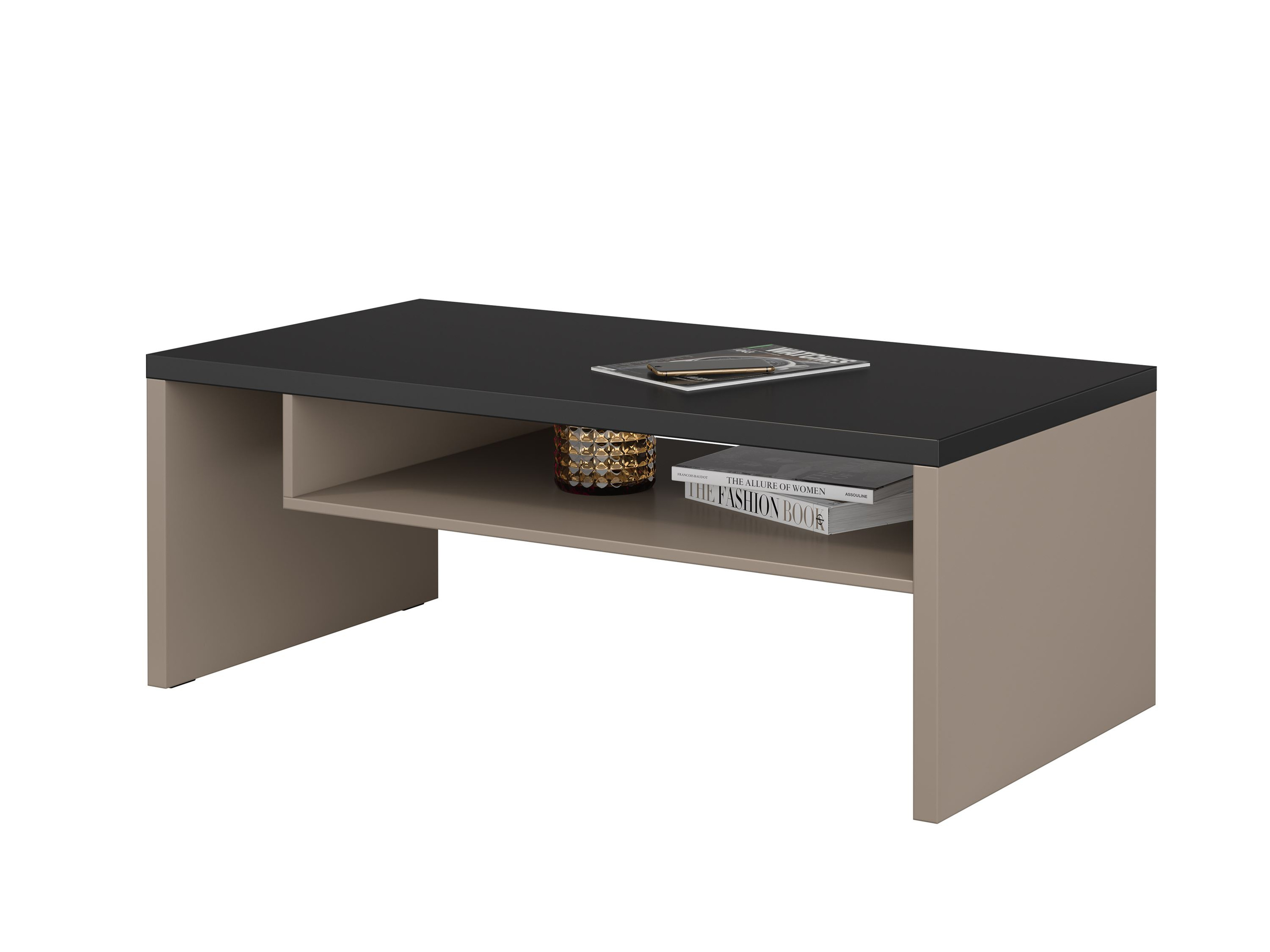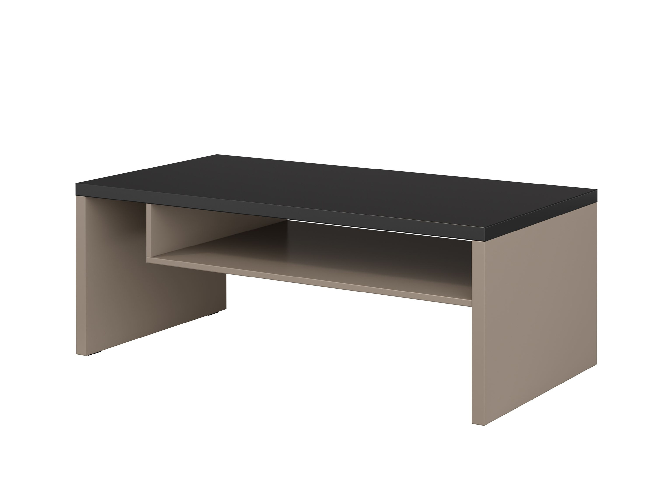 - Stolik kawowy Cross w eleganckim czarnym macie to idealne uzupełnienie każdego wnętrza. Wykonany z laminowanej płyty, łączy nowoczesny styl z praktycznością. Doskonały do salonu, łatwy w montażu i przyciągający wzrok, tworzy stylową przestrzeń spotkań.