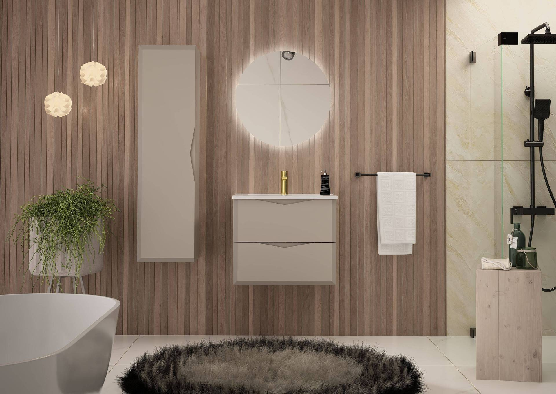 Wprowadź do swojej łazienki elegancję i nowoczesność dzięki szafce pod umywalkę DELICA-02. Produkt marki Megstyl to nie tylko praktyczne rozwiązanie do przechowywania, ale również stylowy akcent, który doda charakteru każdemu wnętrzu. Front wykonany z wysokiej jakości płyty MDF w modnym kolorze kaszmira podkreśla wyrafinowany design, który pasuje do różnych aranżacji łazienkowych.