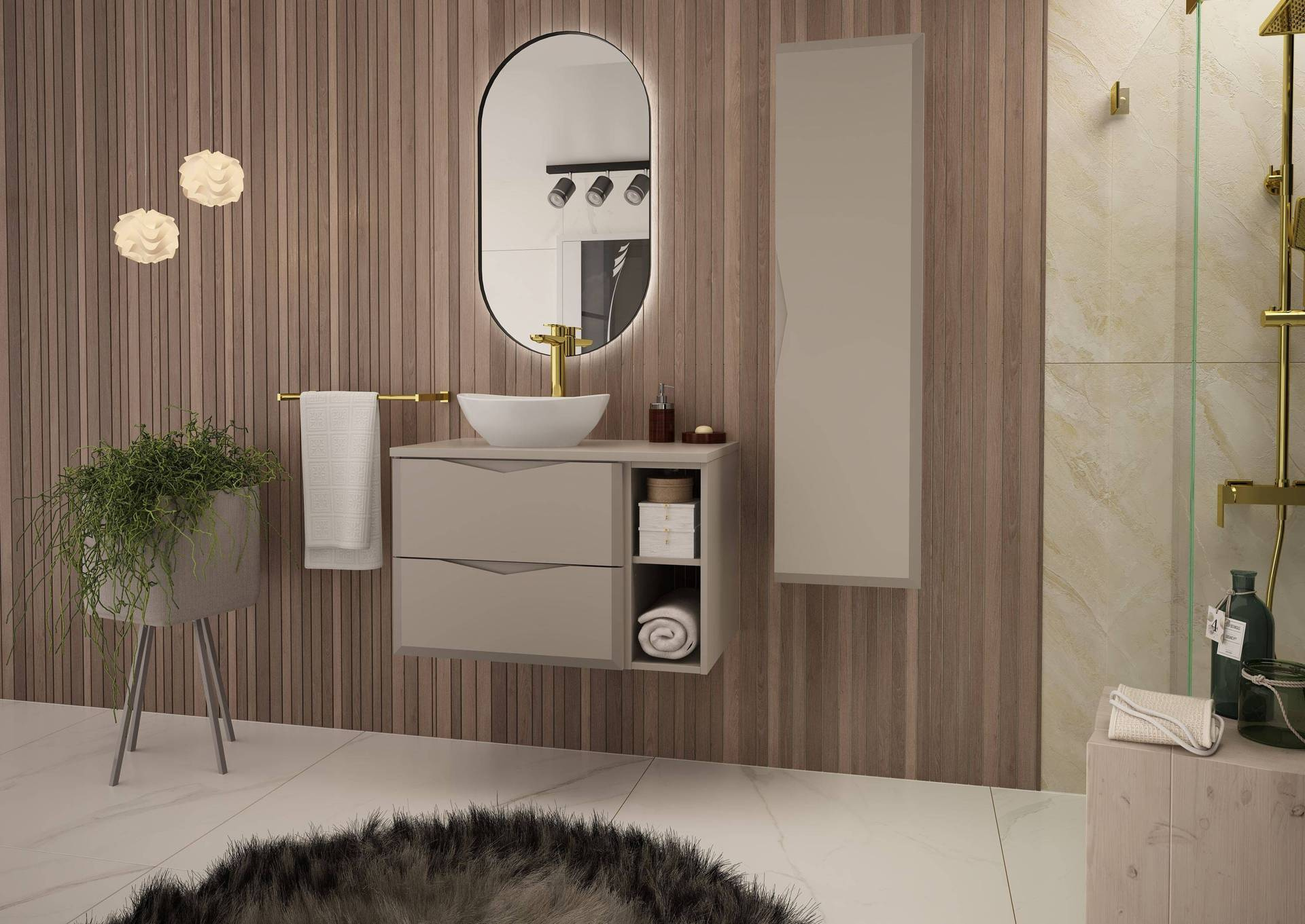 DELICA-02 - Szafka pod Umywalkę z Blatem i Regałem 2S 80cm Kaszmir Zestaw-4