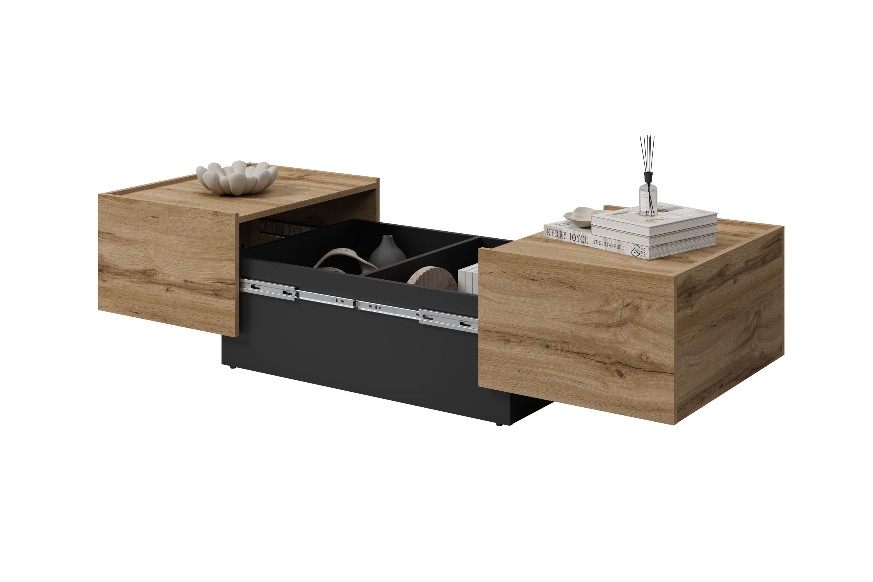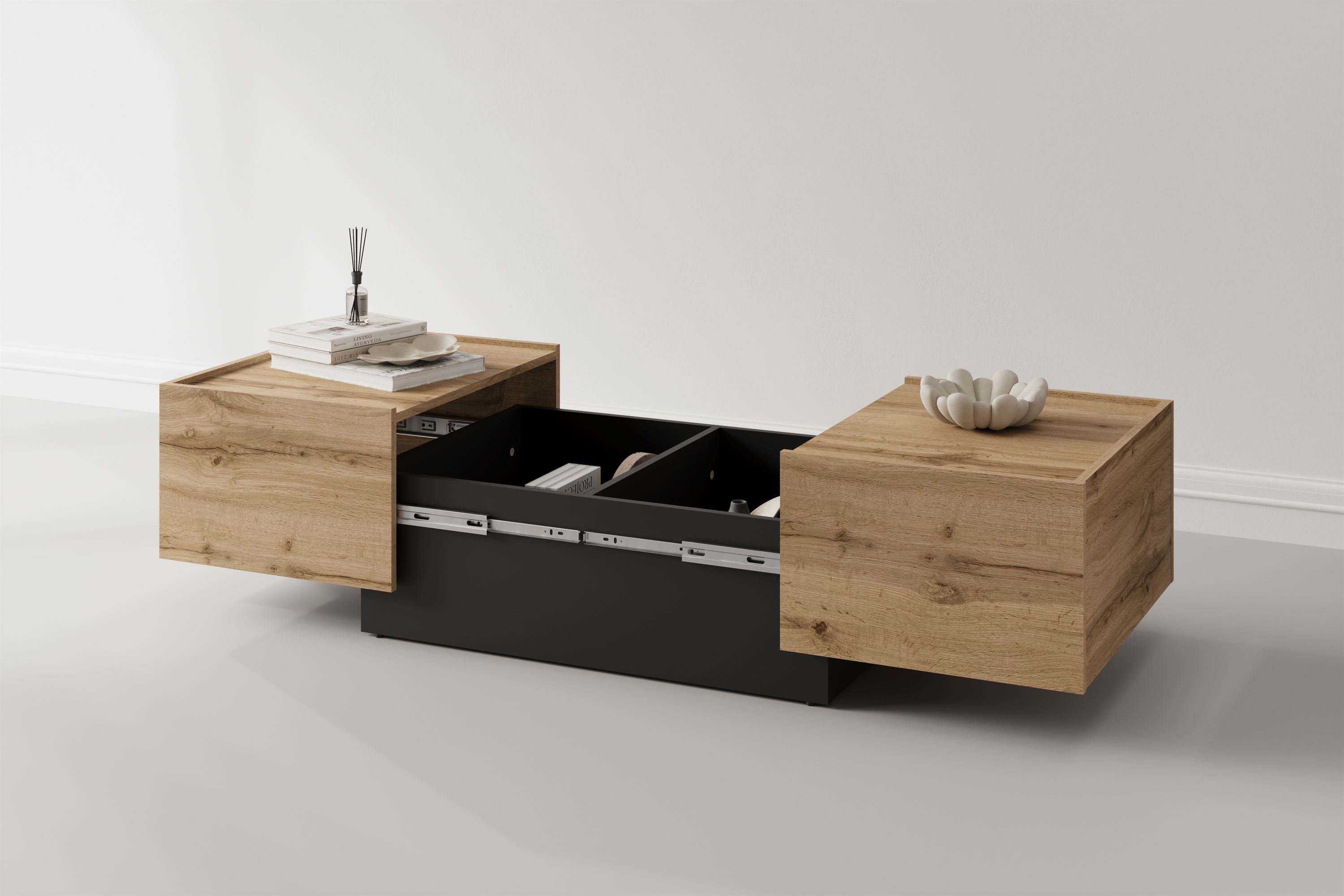 Eko - Stolik Kawowy Rozsuwany Dąb Wotan Czarny Onyx